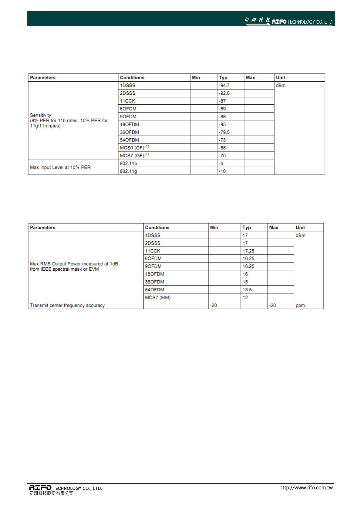 ■ WLAN RF Characteristics