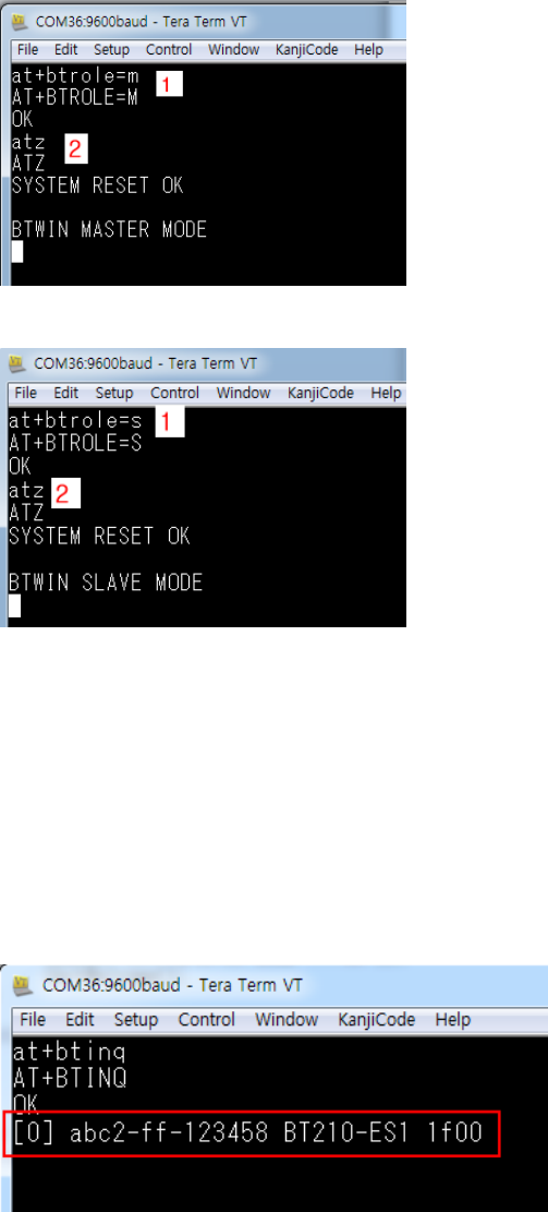 Use the command below to change the mode of the BT-210 (Slave/Master).