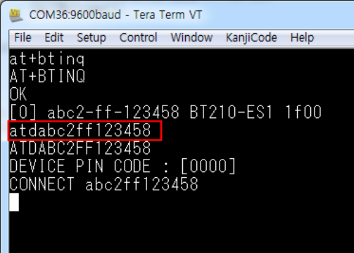 This is possible when the BT-210 is in SPP(Serial Port Profile) mode( 0x1f00).
