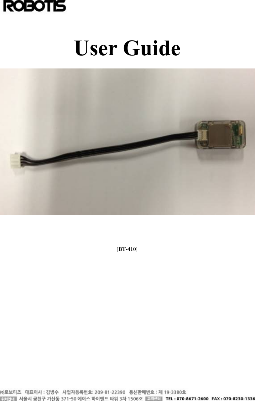 ROBOTIS BT-410 Bluetooth User Manual Manual Revision 01