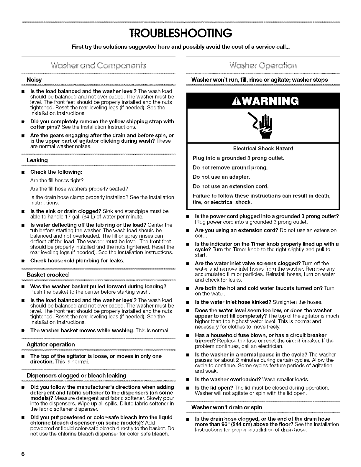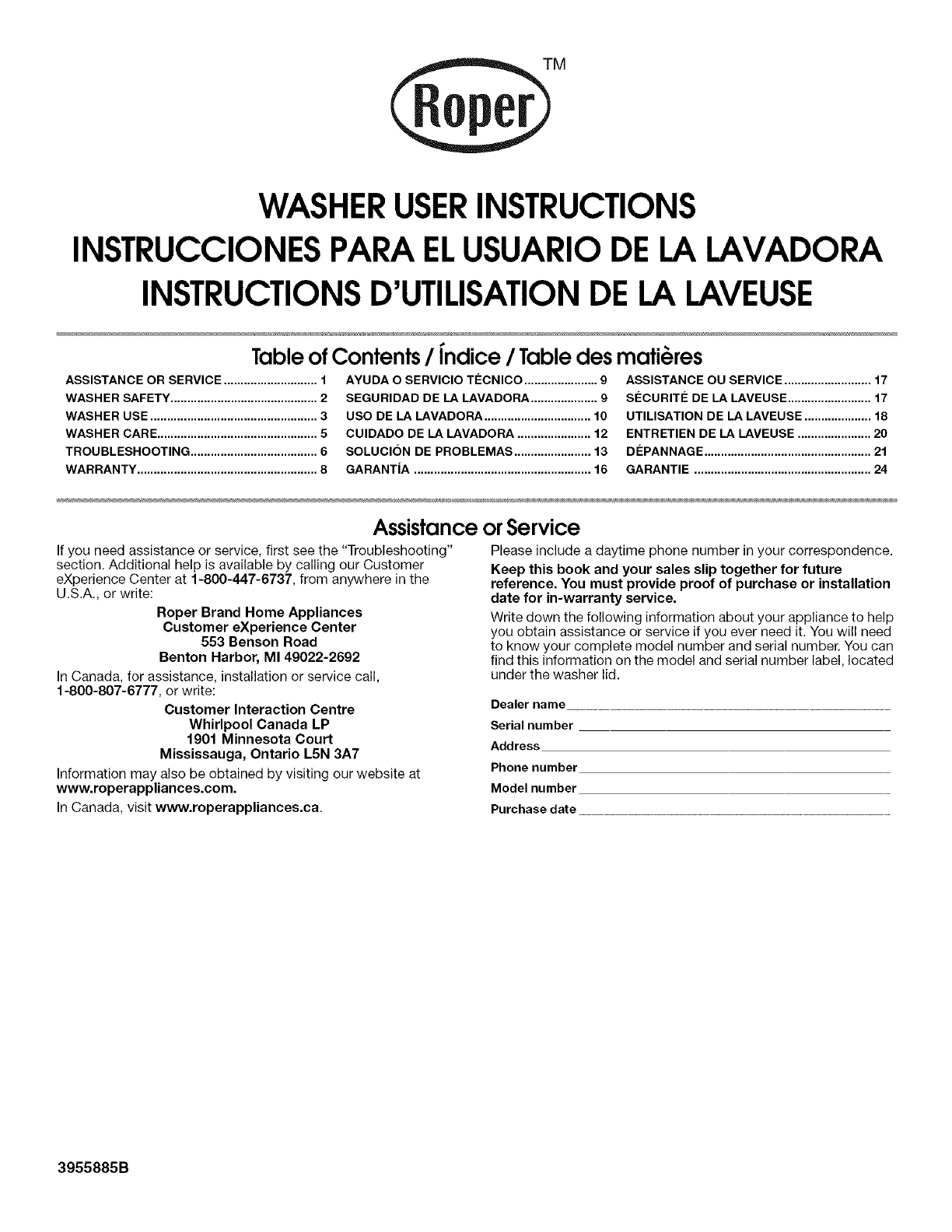 User Manual: ROPER ROPER Residential Washers Manual ROPER Residential Washers Owner's Manual, ROPER Residential Washers installation guides