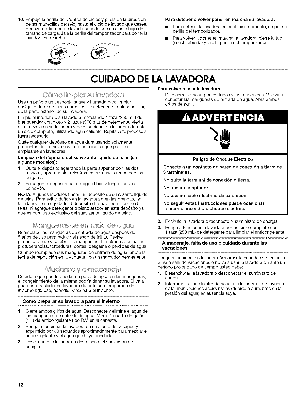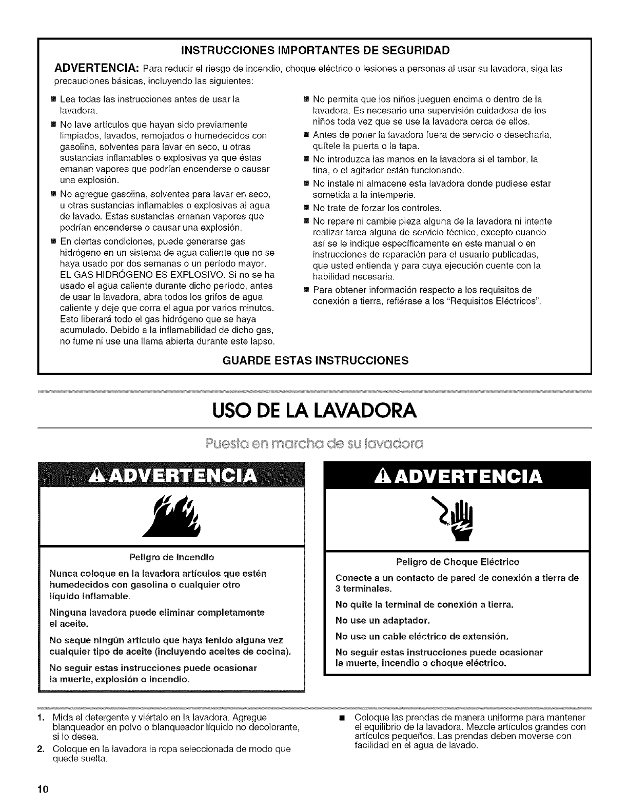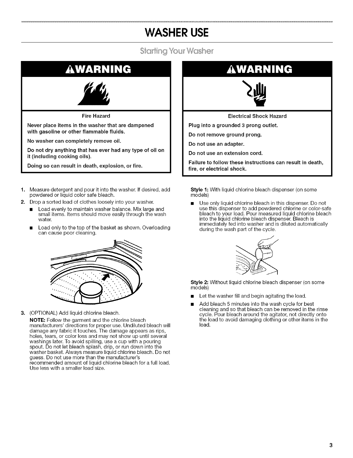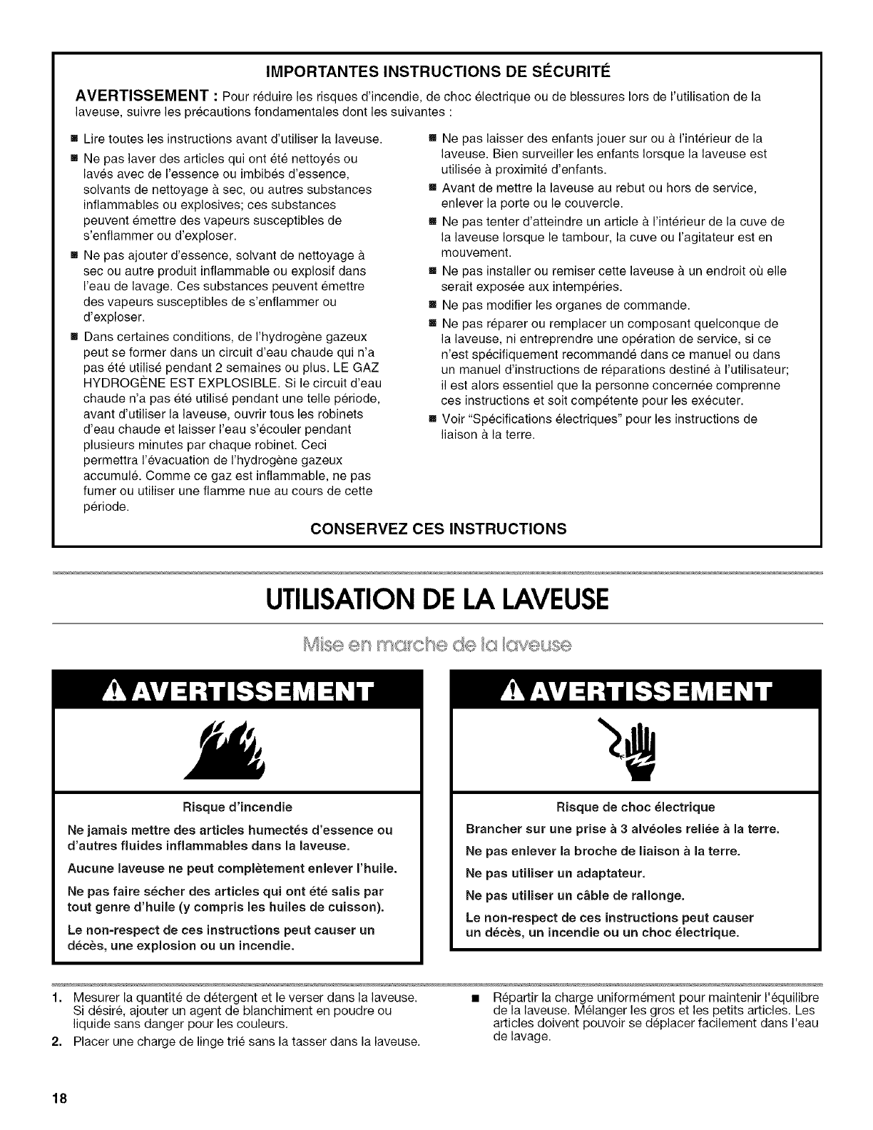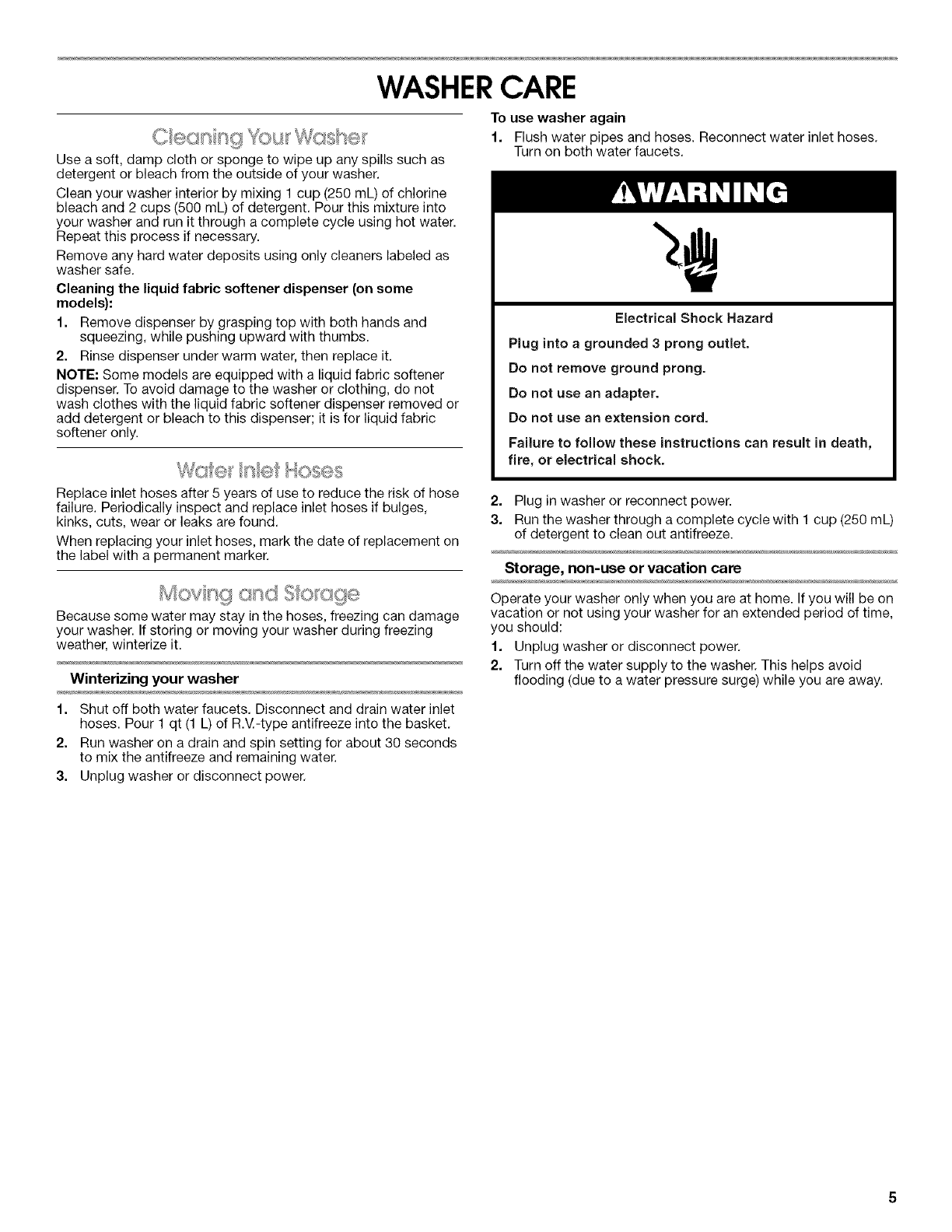WARNING: To reduce the risk of fire, electric shock, or injury to persons when using the washer, follow basic precautions,