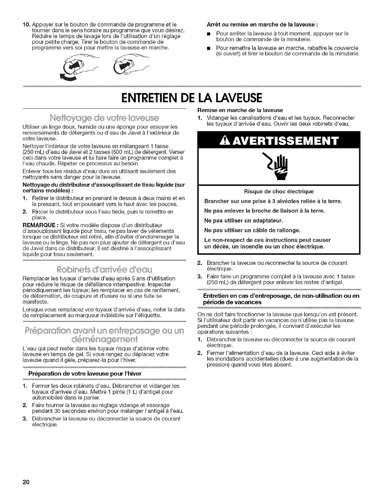 ENTRETIEN DE LA LAVEUSE ...................... 20