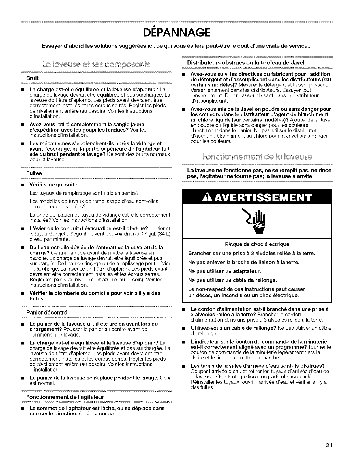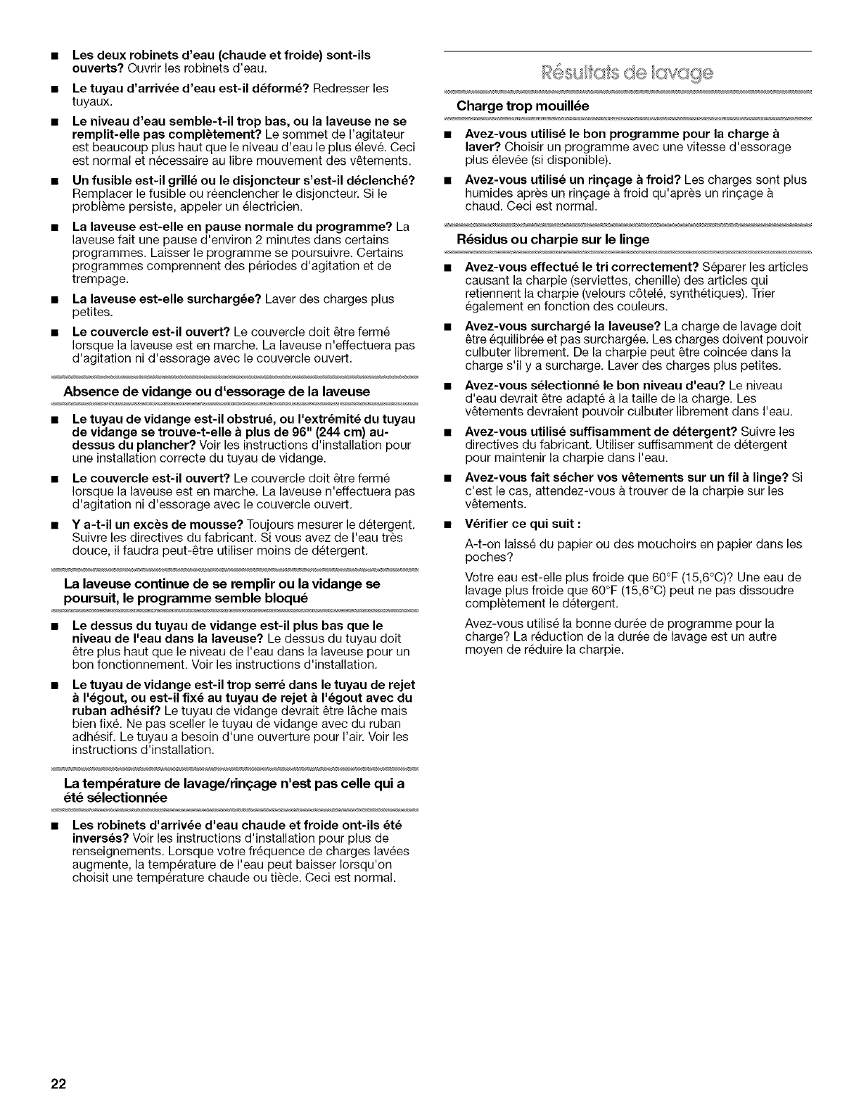".Depannage", de I'aide supplementaire peut _tre trouvee en verifiant la section "Assistance ou service" ou en appelant Whirlpool. Aux