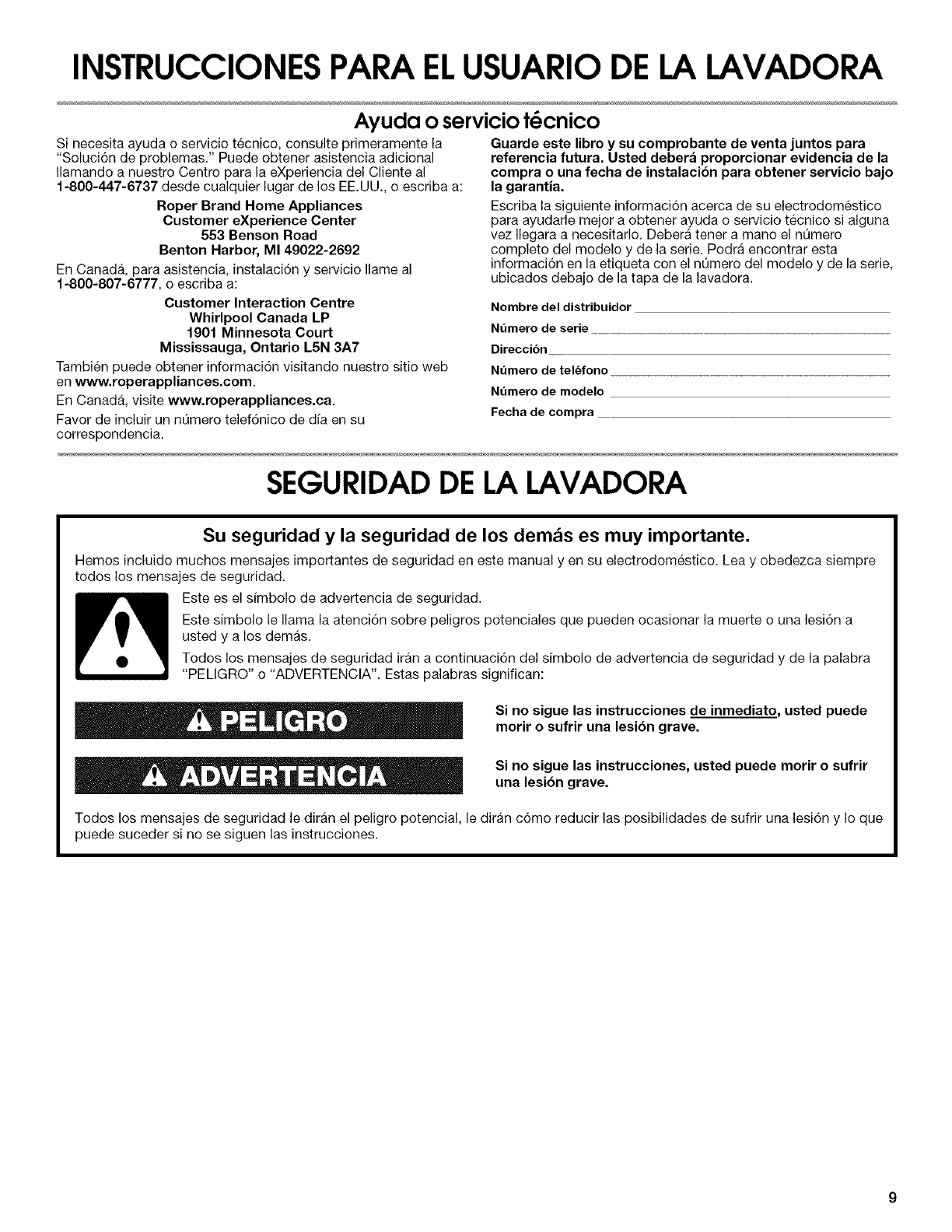 Todos los derechos reservados. ® Marca registrada/TM Marca de comercio de Whirlpool, U.S.A., usada bajo licencia de Whirlpool Canada LP en Canada Impreso en EE,UU.