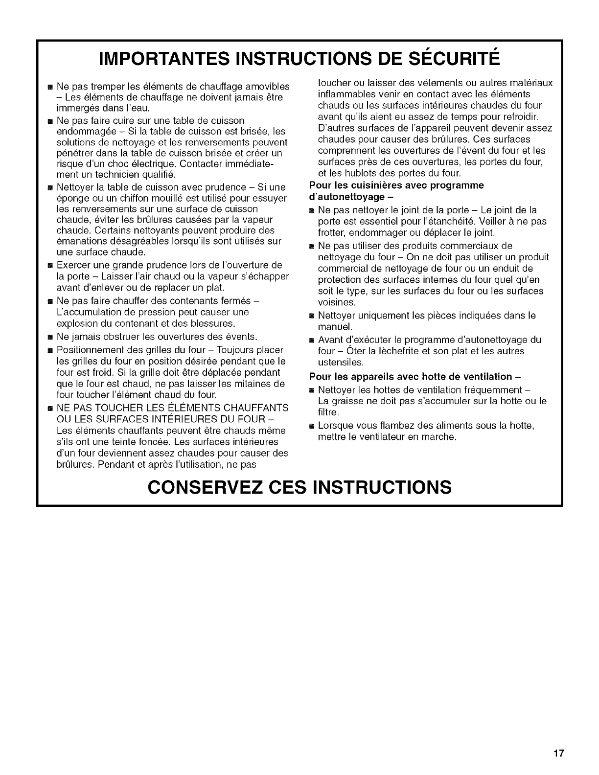 SECURITE DE LA CUlSINIERE ................................................... 15