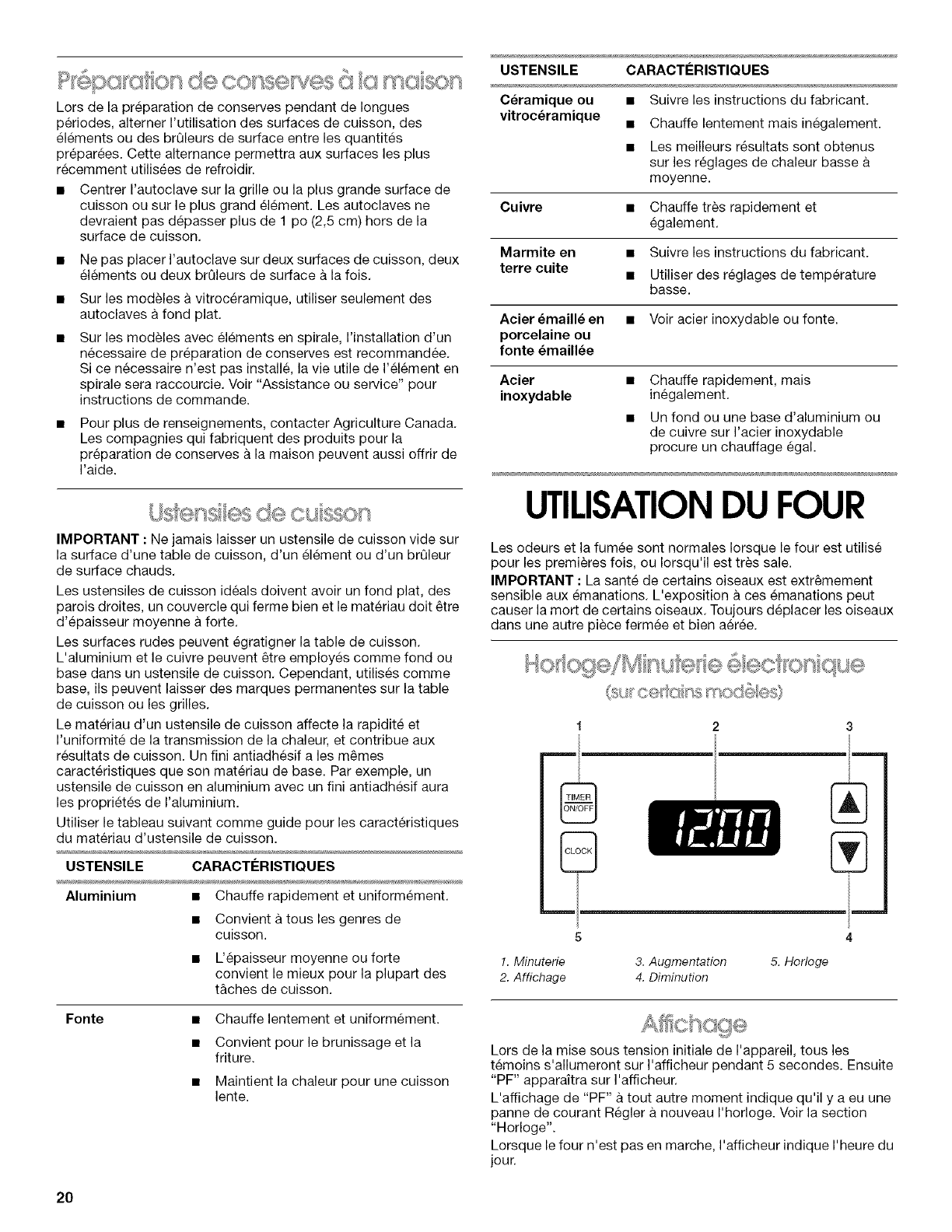 Ustensiles de cuisson ................................................................ 20