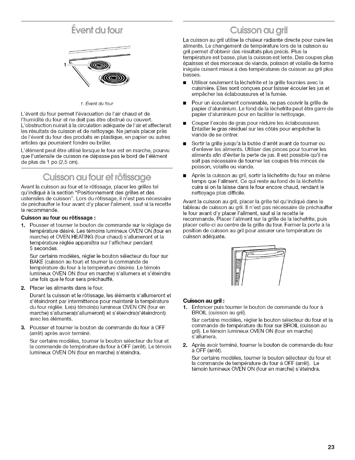Cuisson au four et rGtissage ...................................................... 23