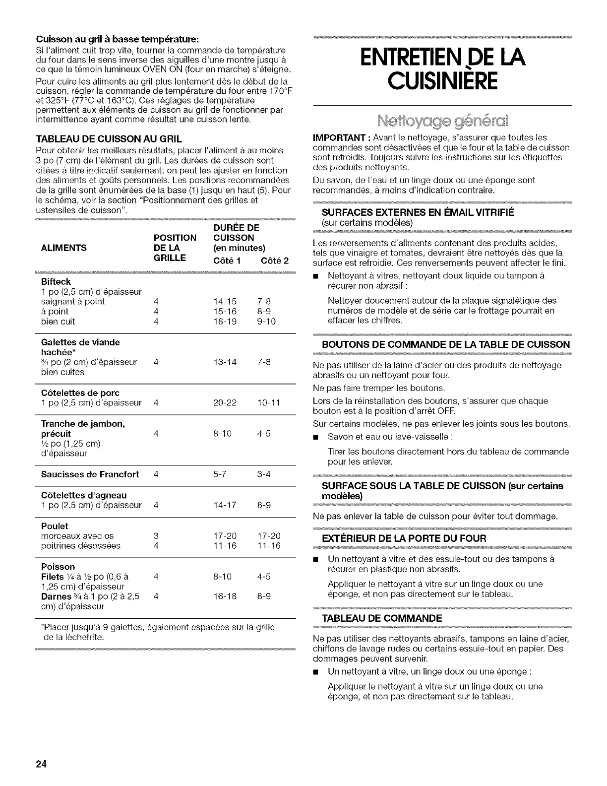 Cuisson au gril ............................................................................ 23