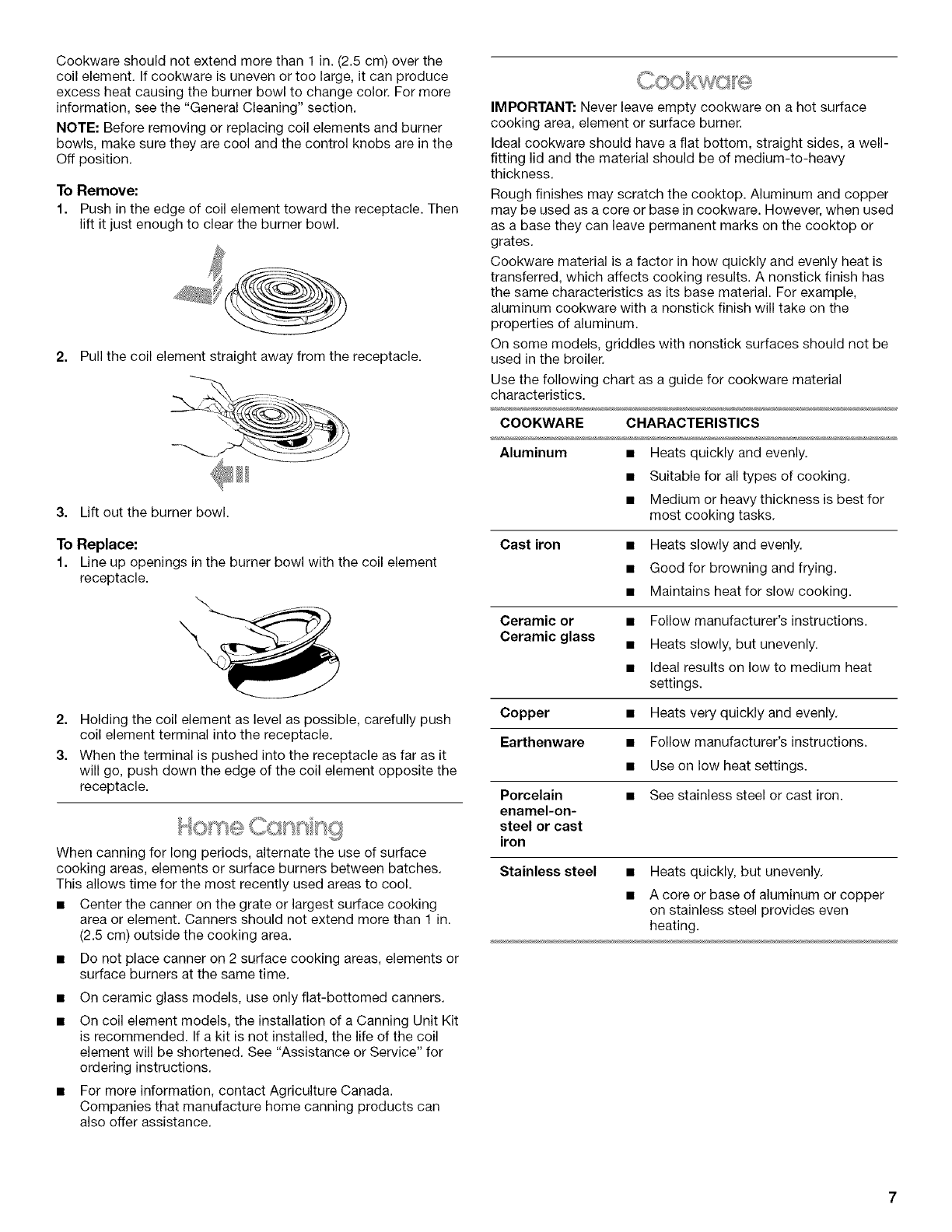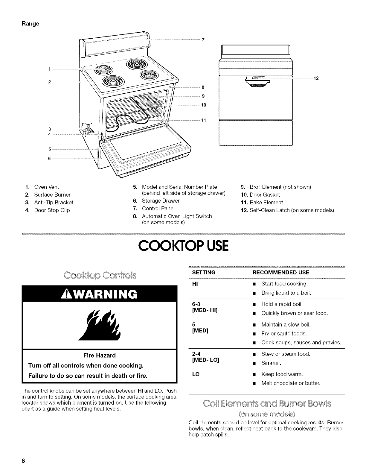 Coil Elements and Burner Bowls ................................................. 6