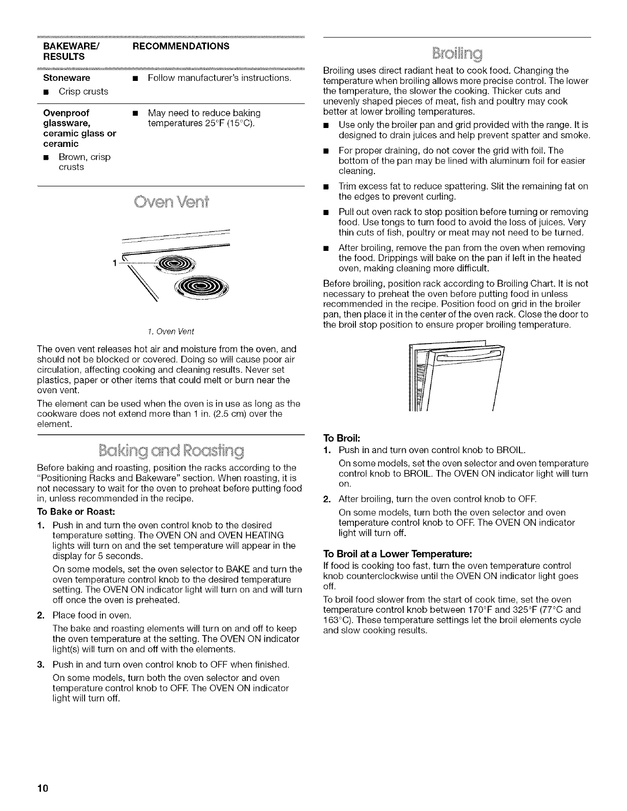 Broiling ........................................................................................ 10