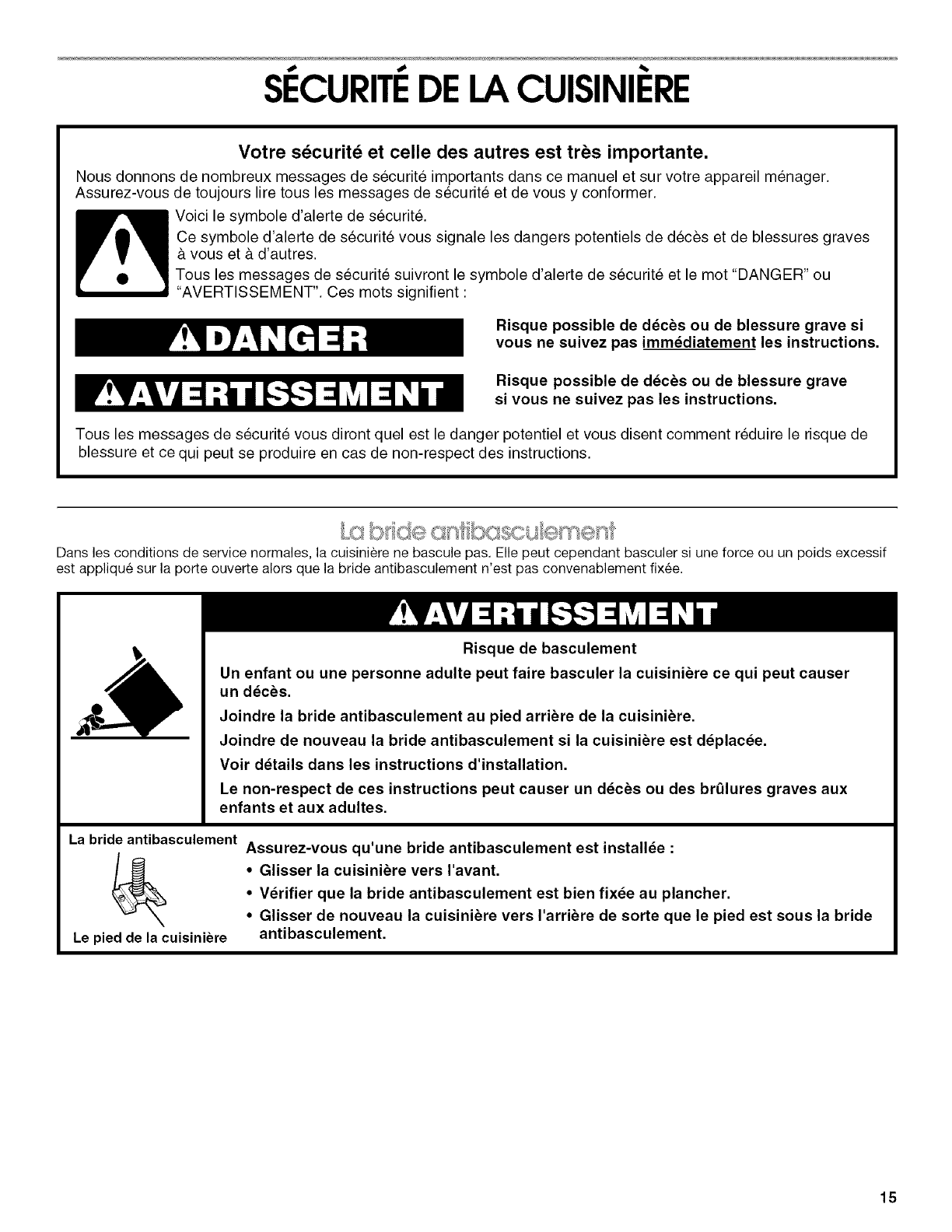 La bride antibasculement ........................................................... 15