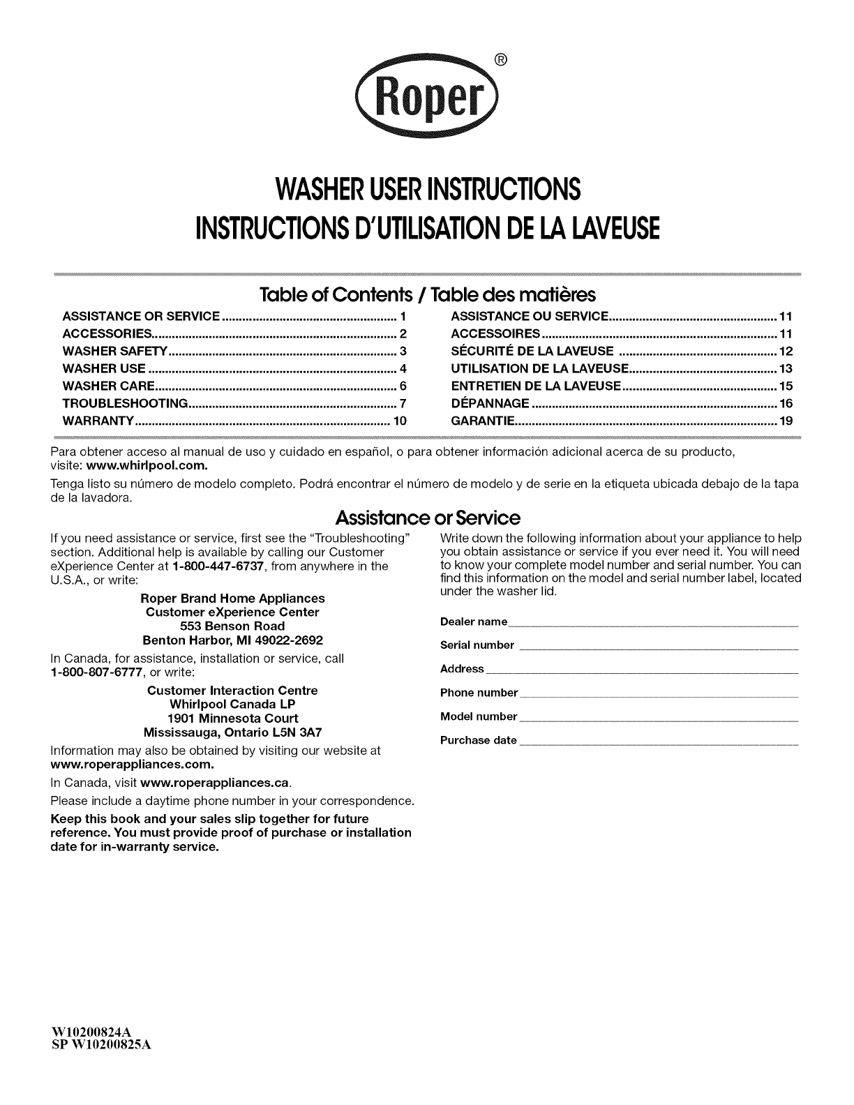 In Canada, visit www.roperappliances.ca.