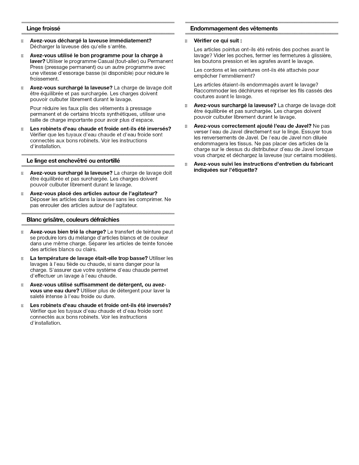 Les articles etaient-ils endommages avant le lavage?