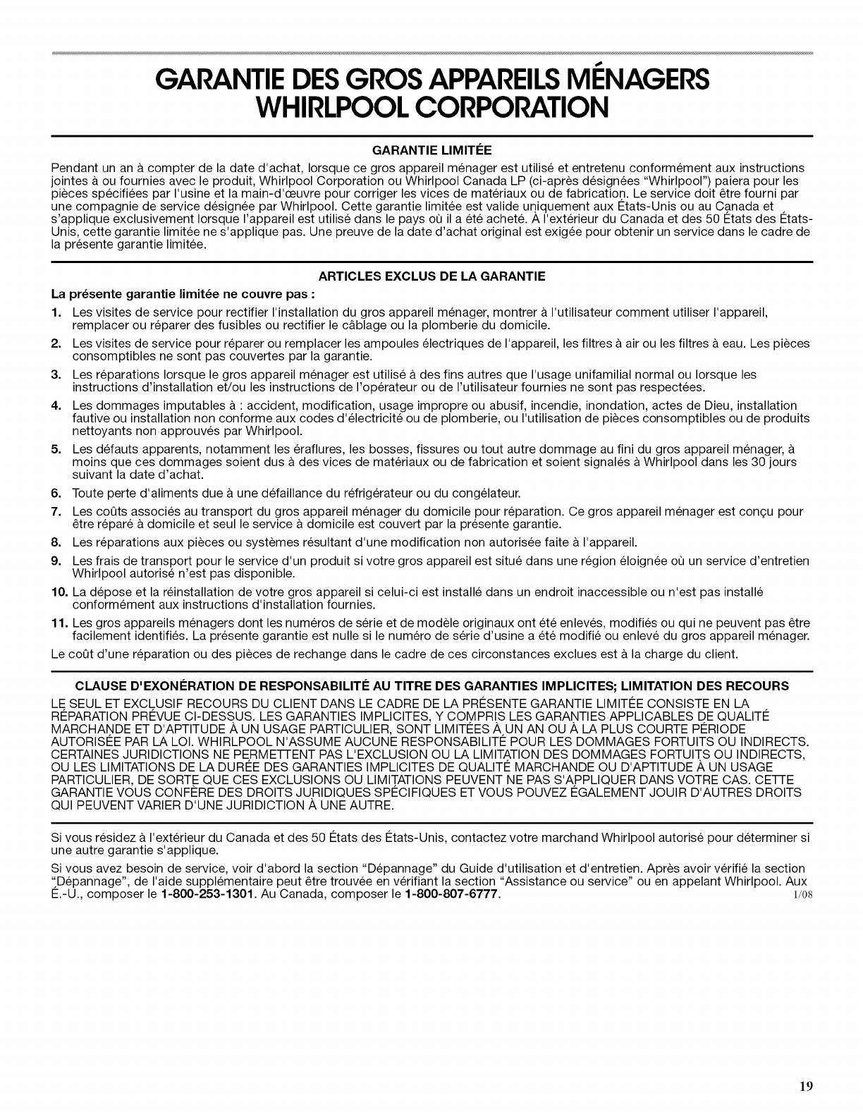 E.-U., composer le 1-800-253-1301. Au Canada, composer le 1-800-807-6777. 1/08