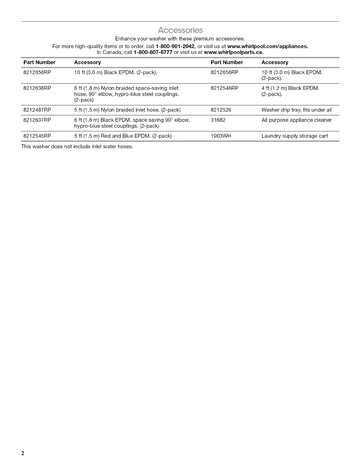 For more high-quality items or to order, call 1-800-901-2042, or visit us at www.whirlpool.com/appliances.
