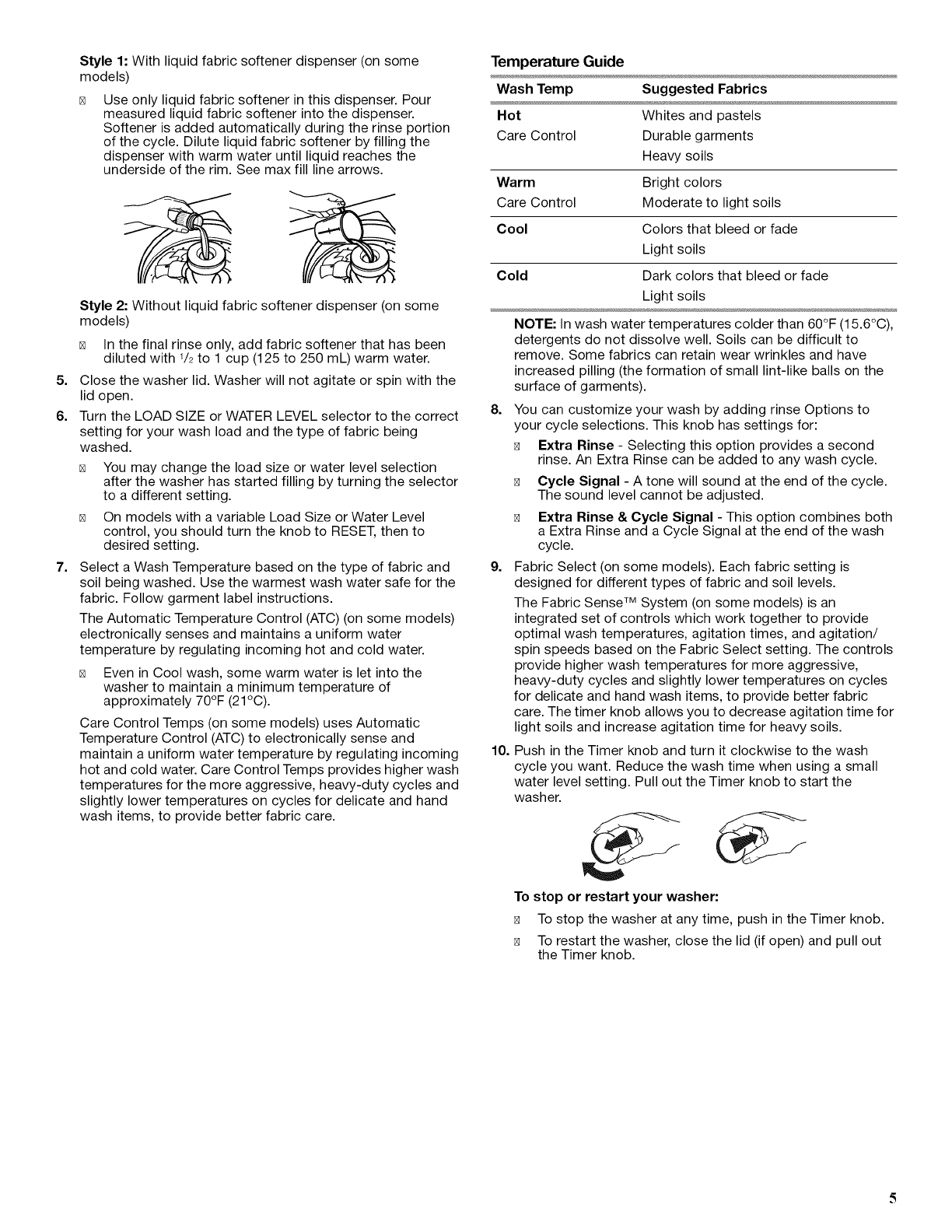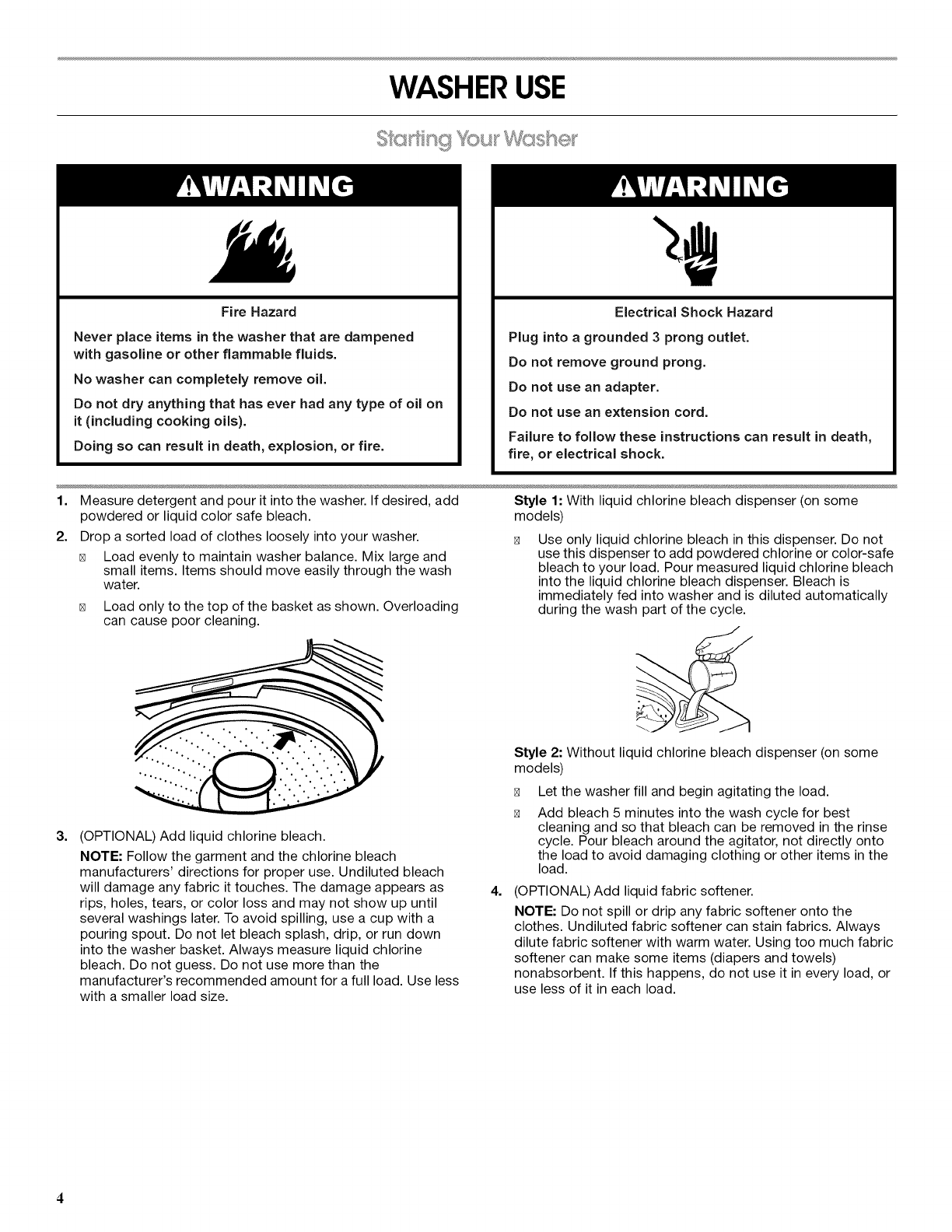 WASHER USE .......................................................................... 4