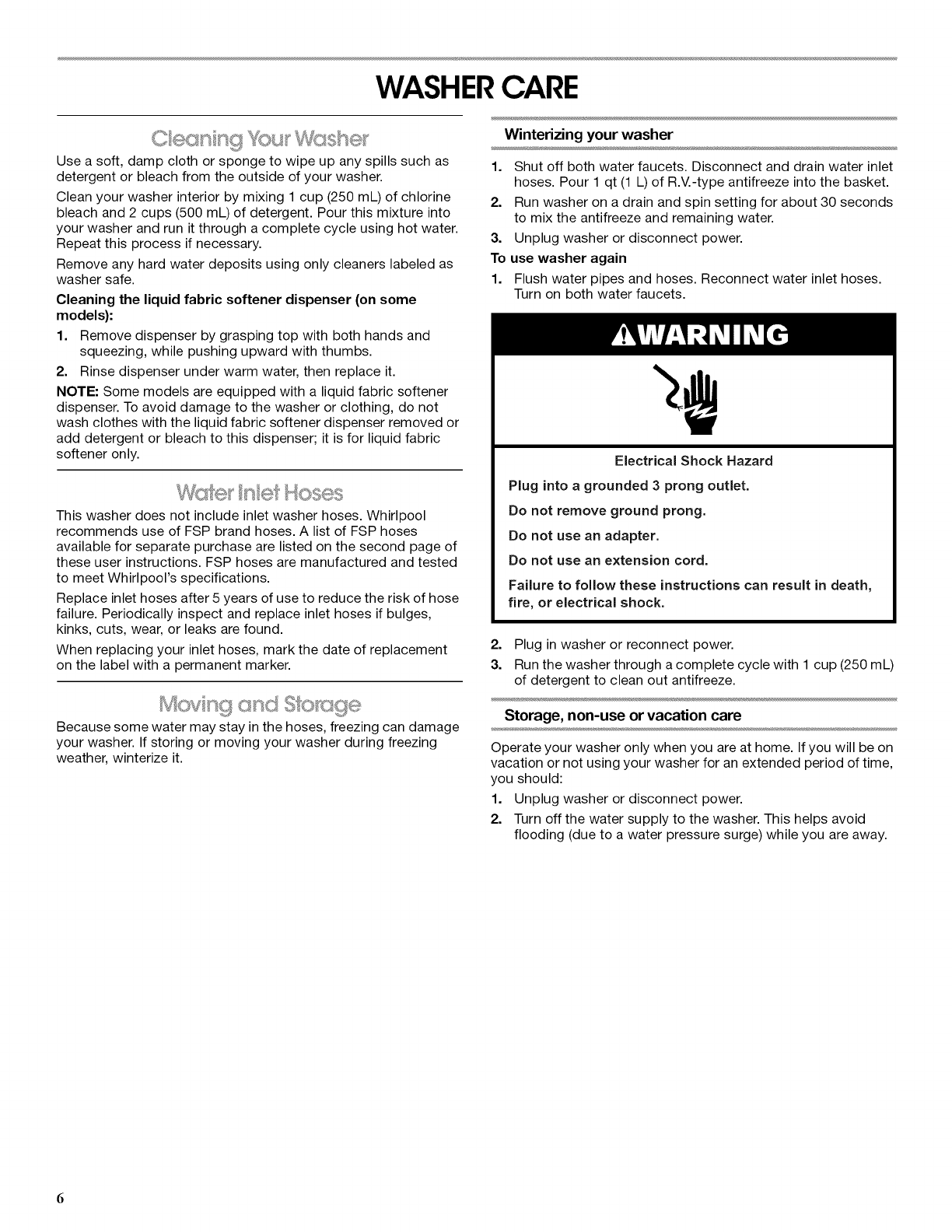 WASHER CARE ........................................................................ 6