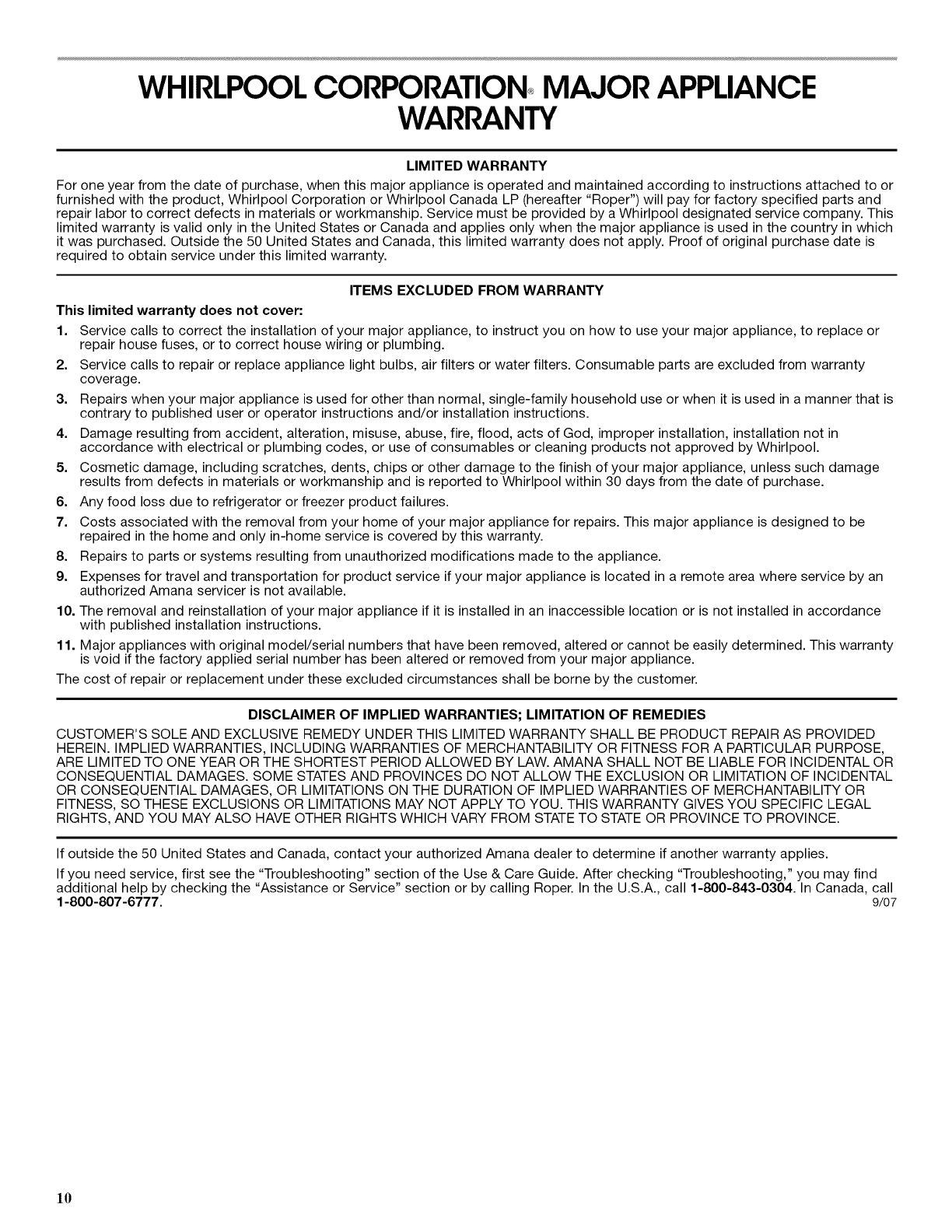 In Canada, call 1-800-807-6777 or visit us at www.whirlpoolparts.ca.
