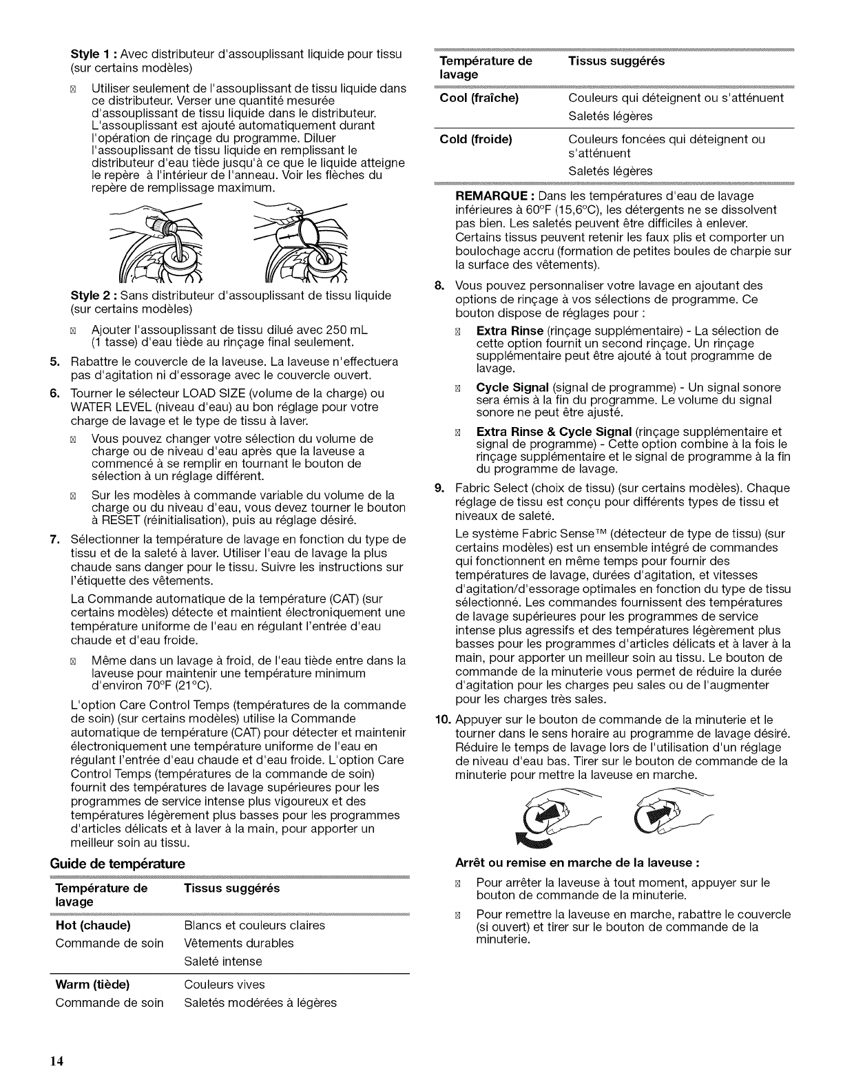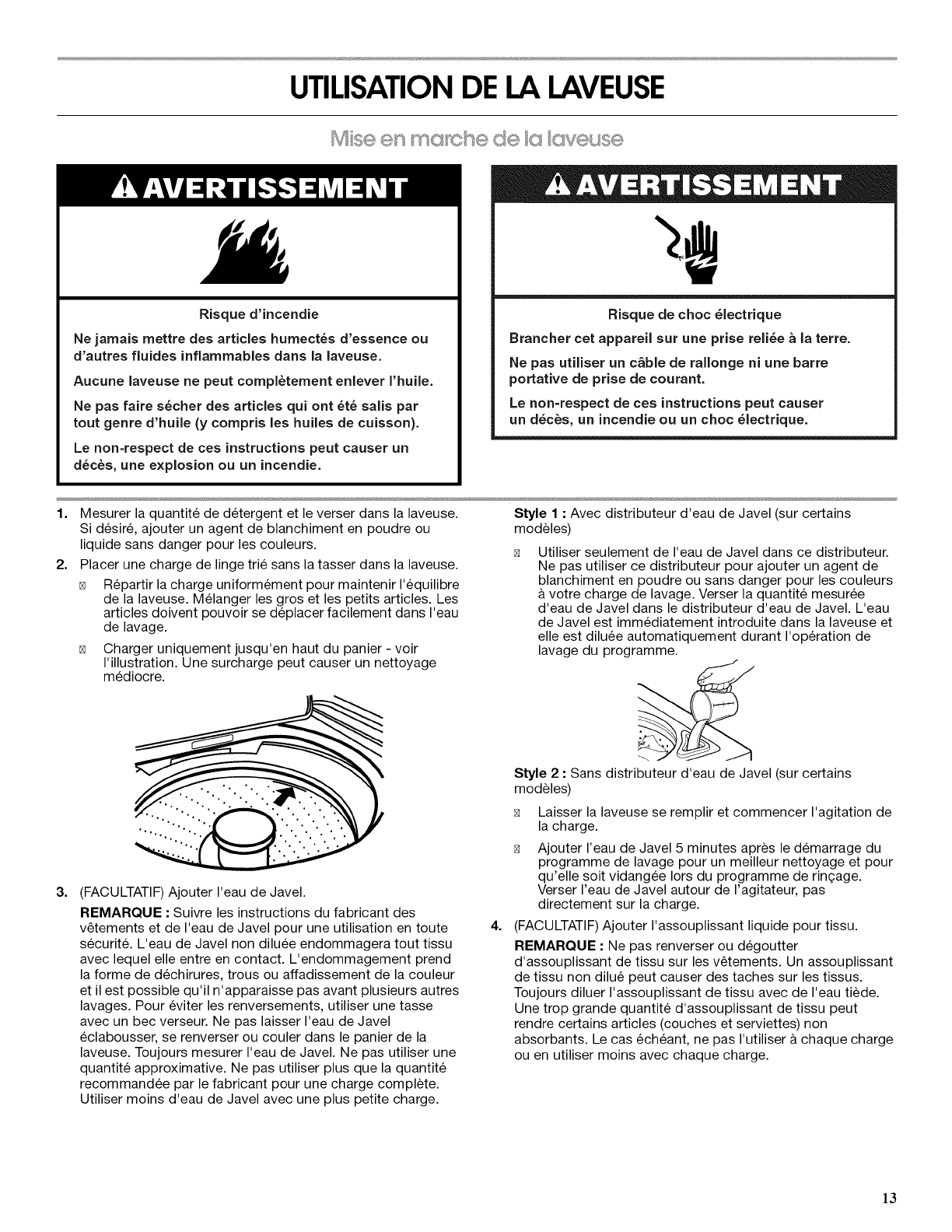 UTILISATION DE LA LAVEUSE ............................................ 13