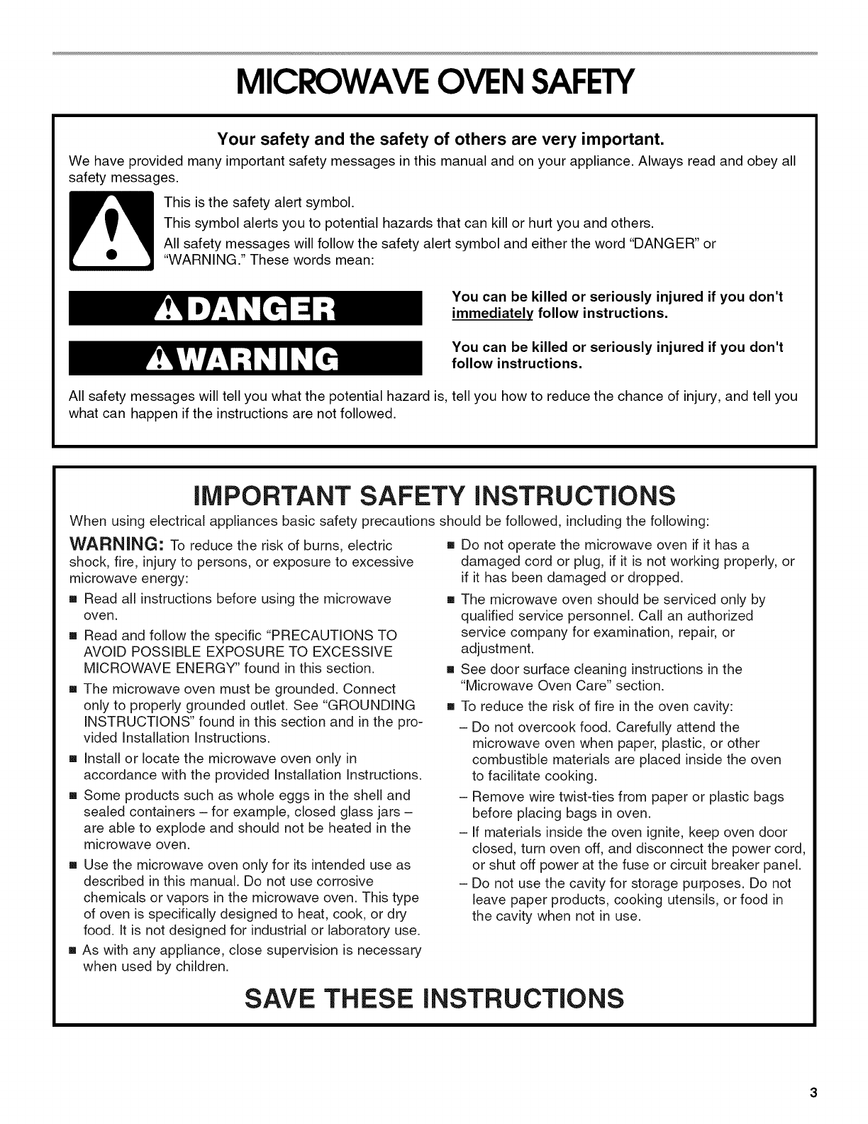 MICROWAVE OVEN SAFETY ........................................................ 3