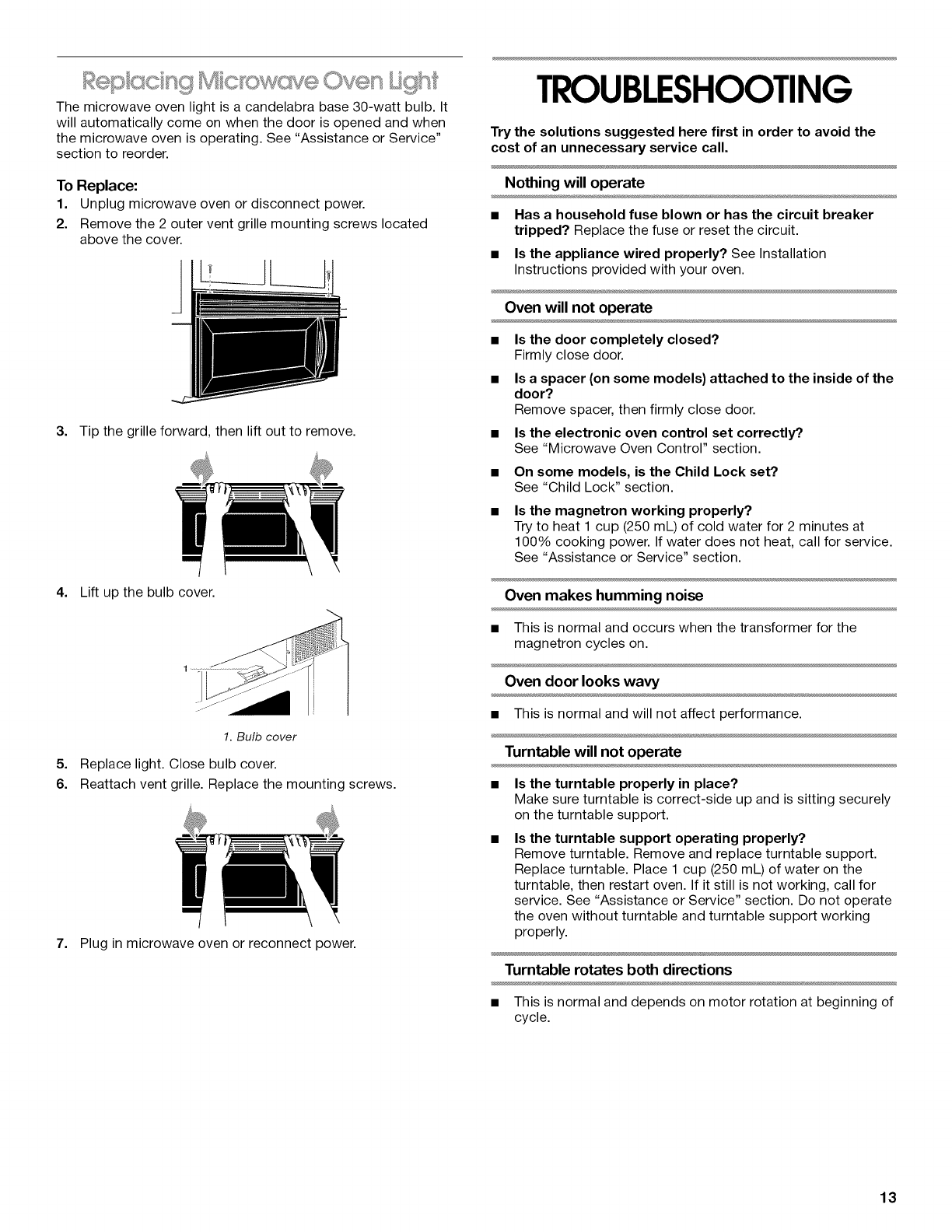 WARNING: To reduce the risk of burns, electric [] Do not operate the microwave oven if it has a
