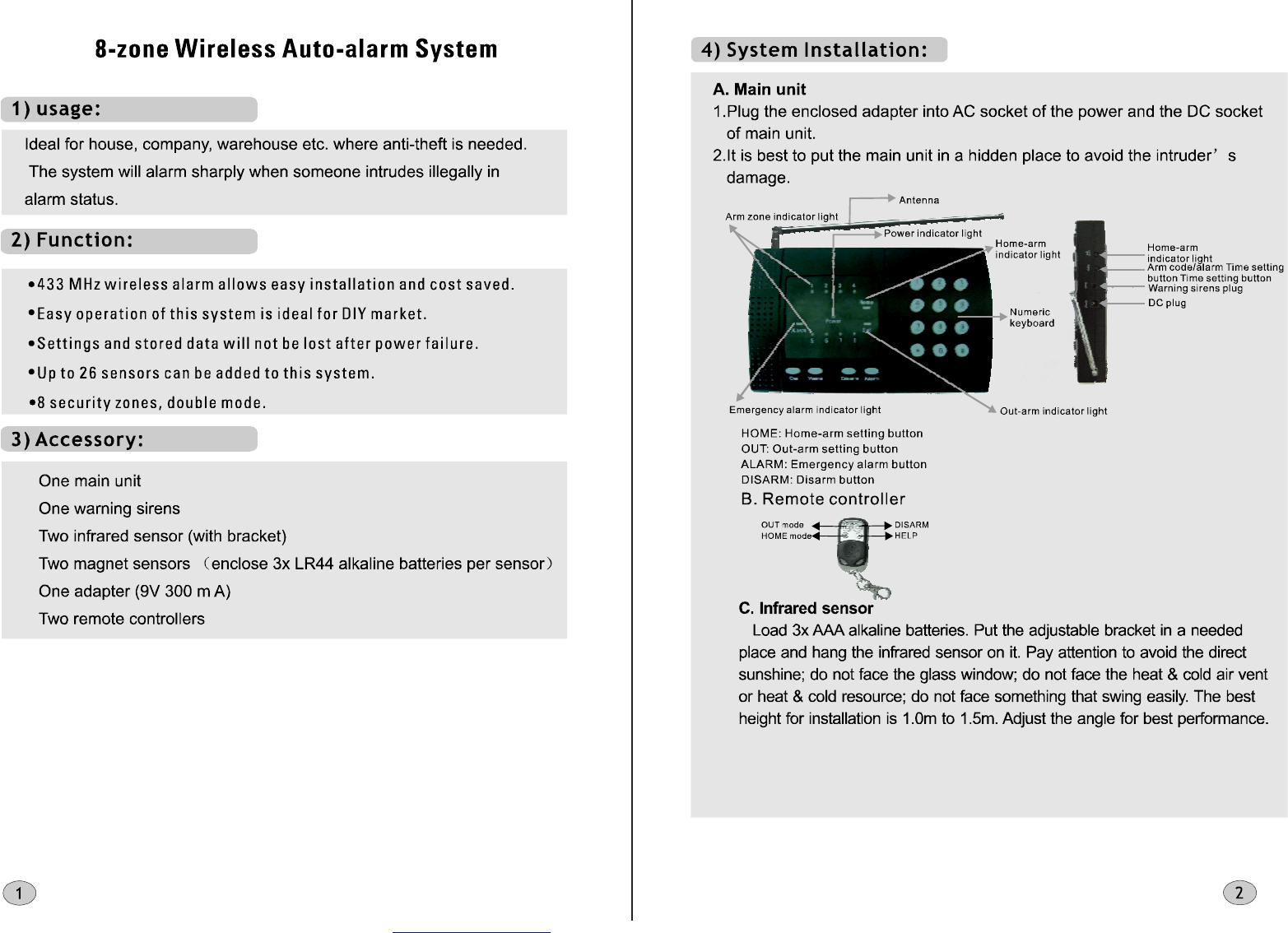 GUANGDONG ROULE ELECTRONICS CO.,LTD Wireless alarm kit RL 0507A