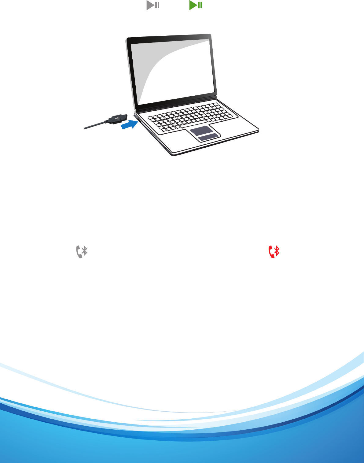 When the headset is connected to a PC, and not receiving or making calls, the user can listen to