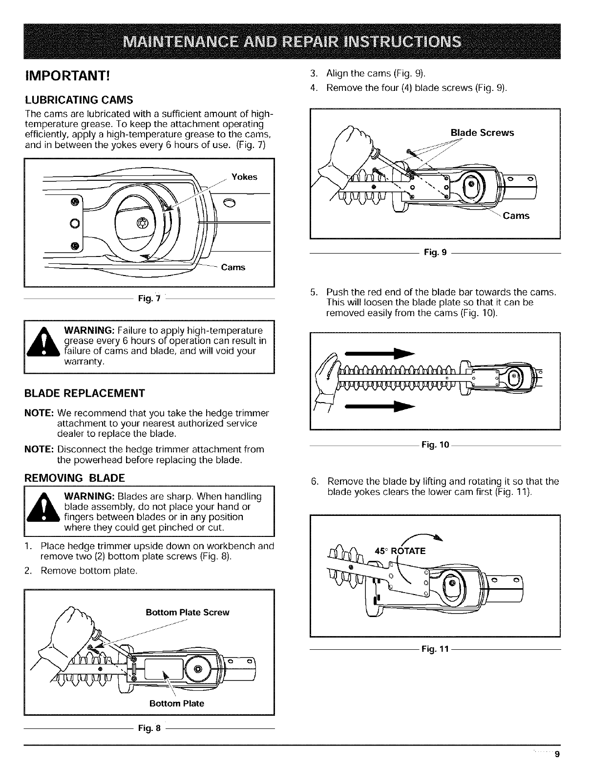 III. Maintenance and Repair Instructions ....... 9-11