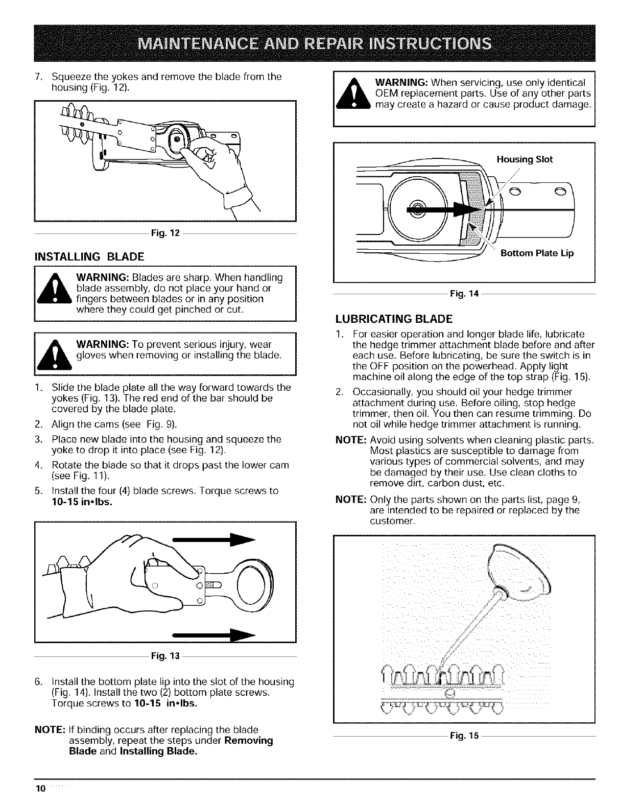 C. Lubricating Blade ..................... 10