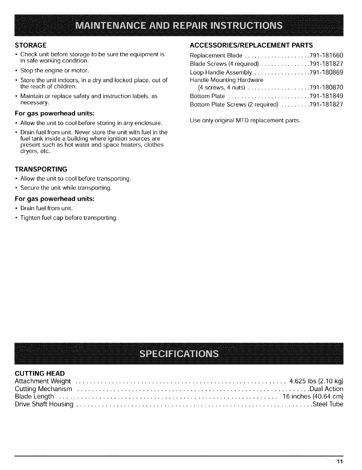 F. Accessories/Replacement Parts ......... 11