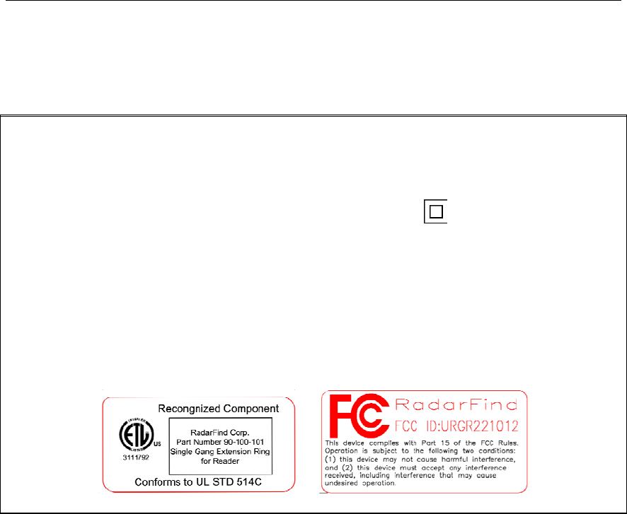 the Reader from being installed in its default position or orientation. RadarFind Readers