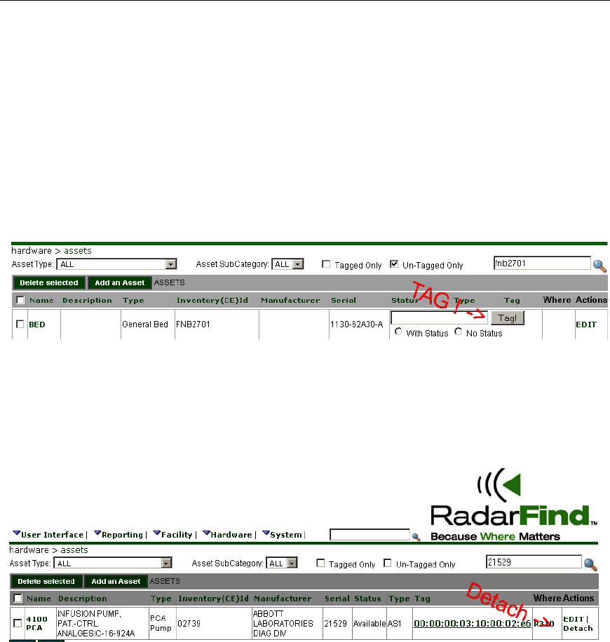 asset inventory number. Enter or scan tag ID into the Radarfind software, select which tag