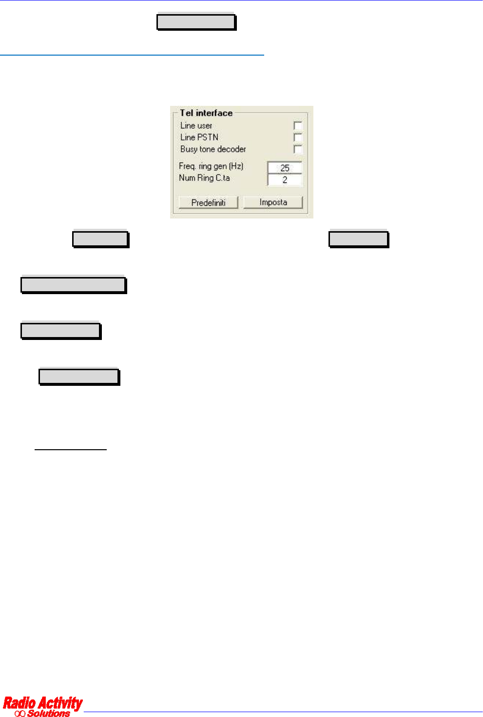 This form allows the user to perform some tests on the line interfaces. In the section Linea attiva you can