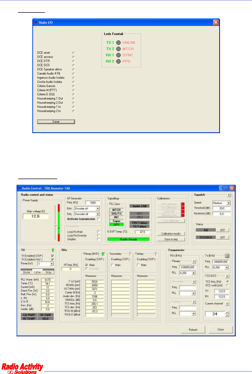 This form allows to constantly monitor the state of the I/O contacts of the radio and of the LEDs in front of the
