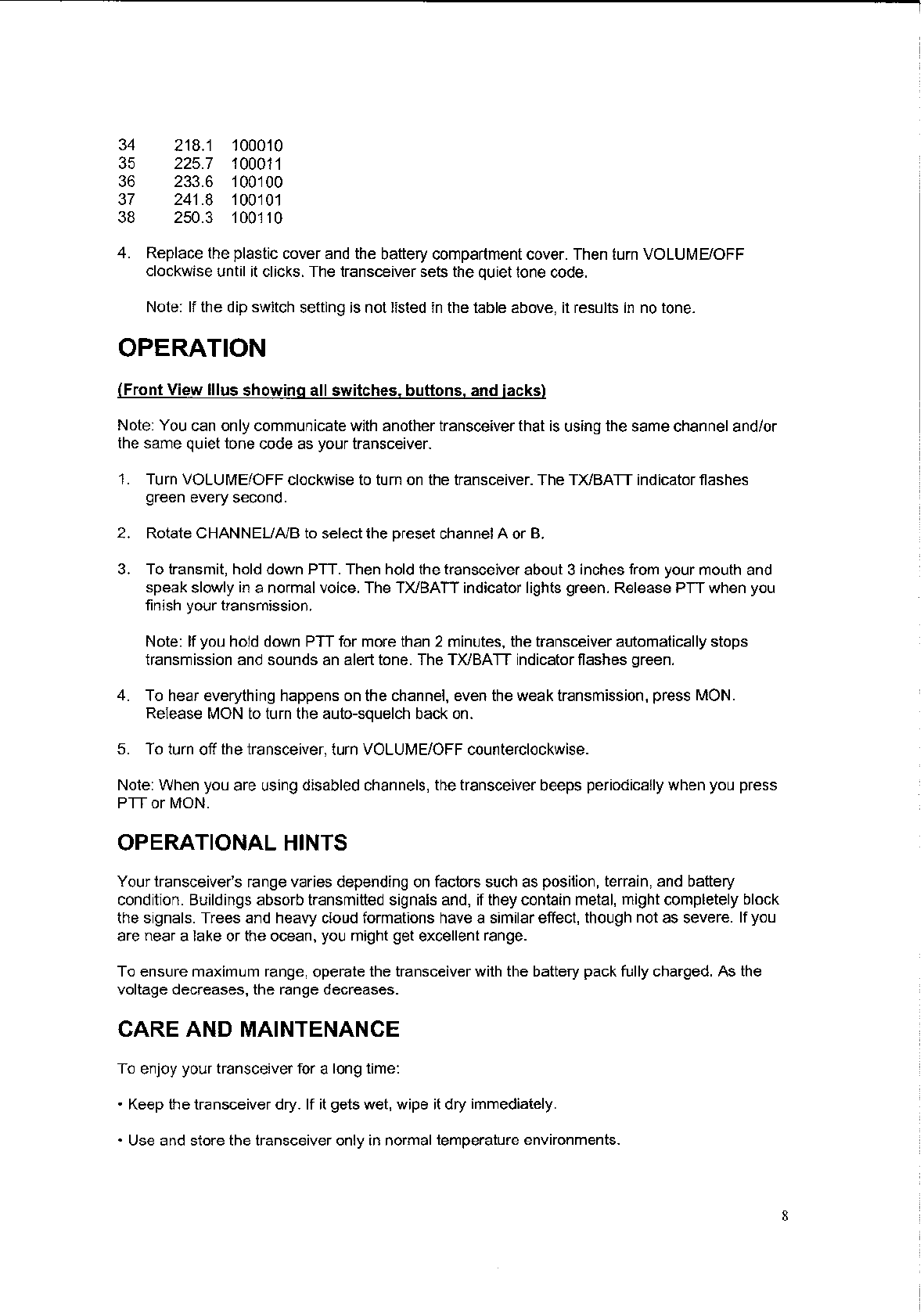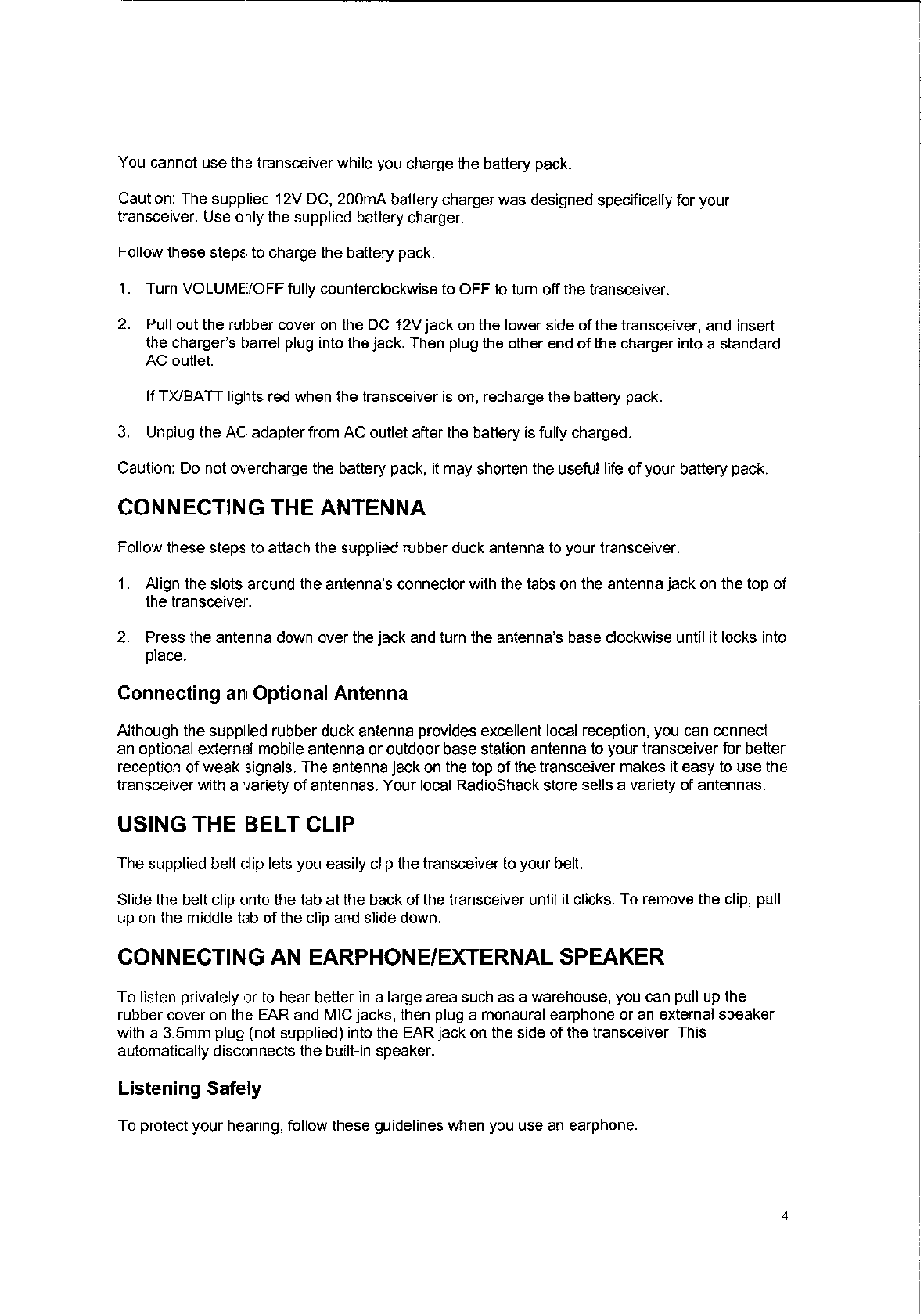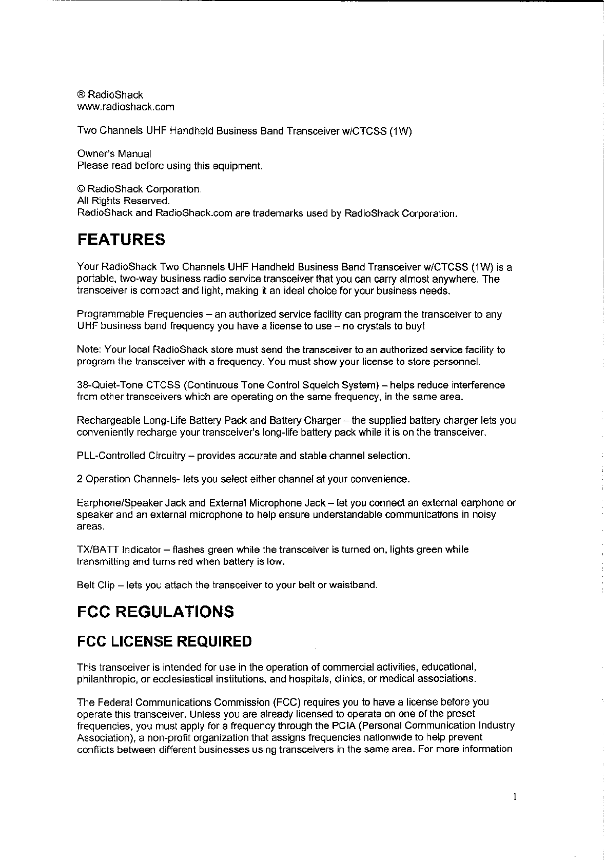Radio Shack 1901207 UHF Business Band Transceiver User Manual