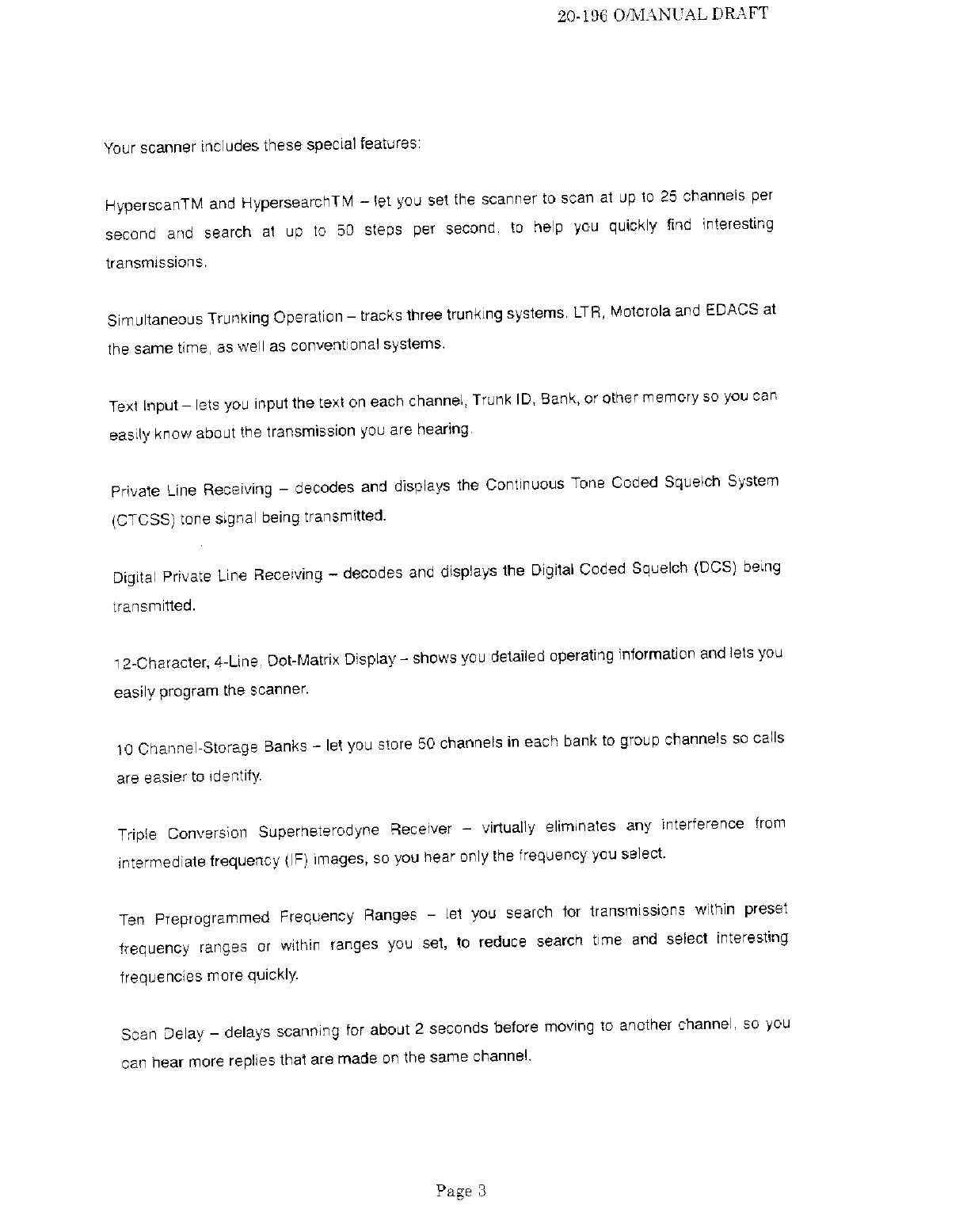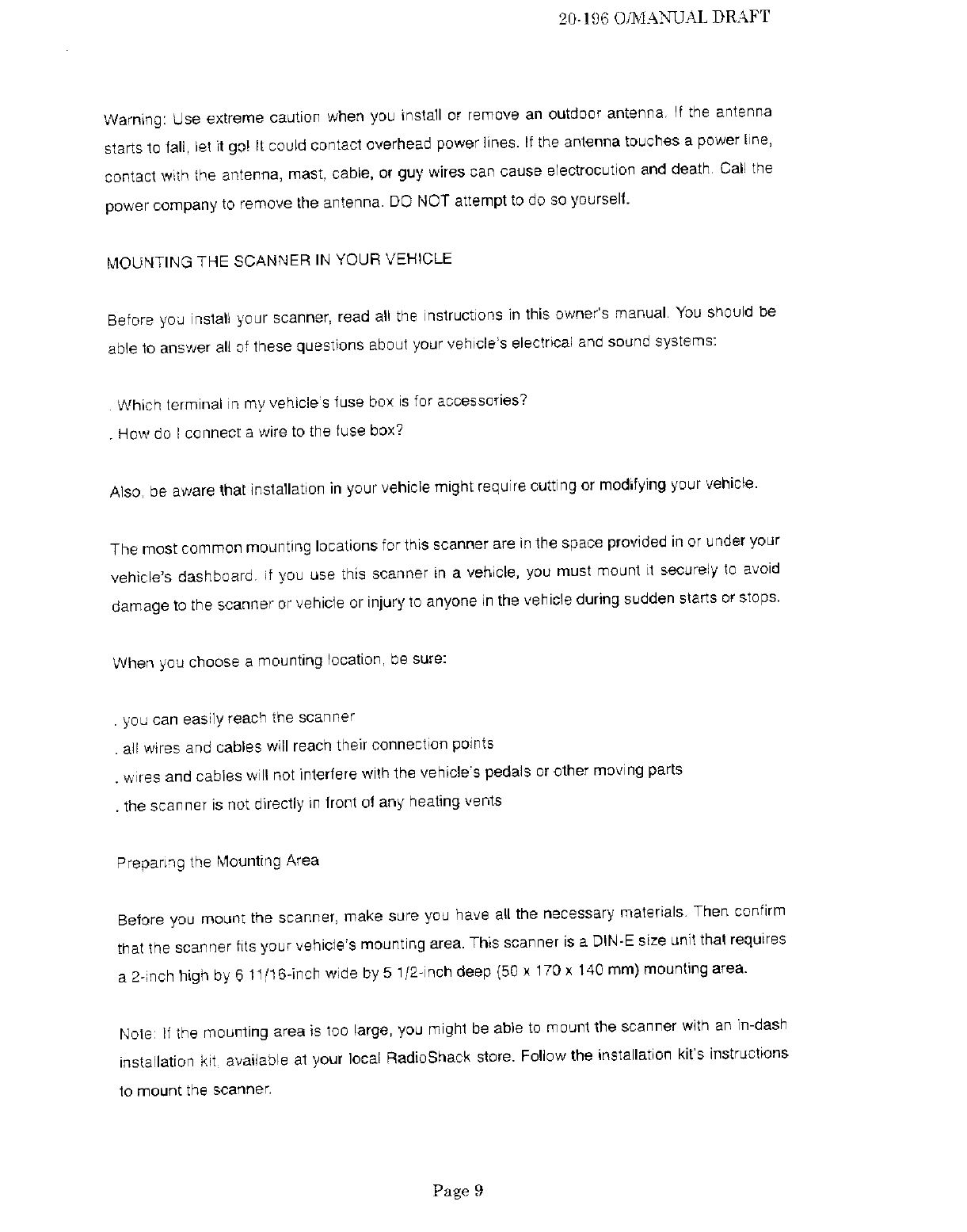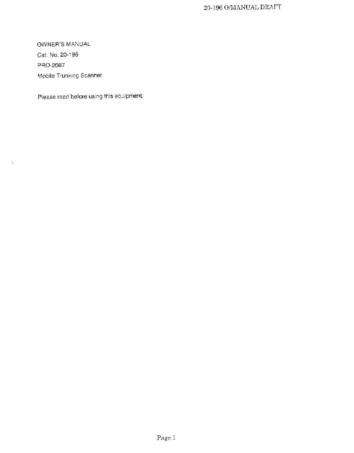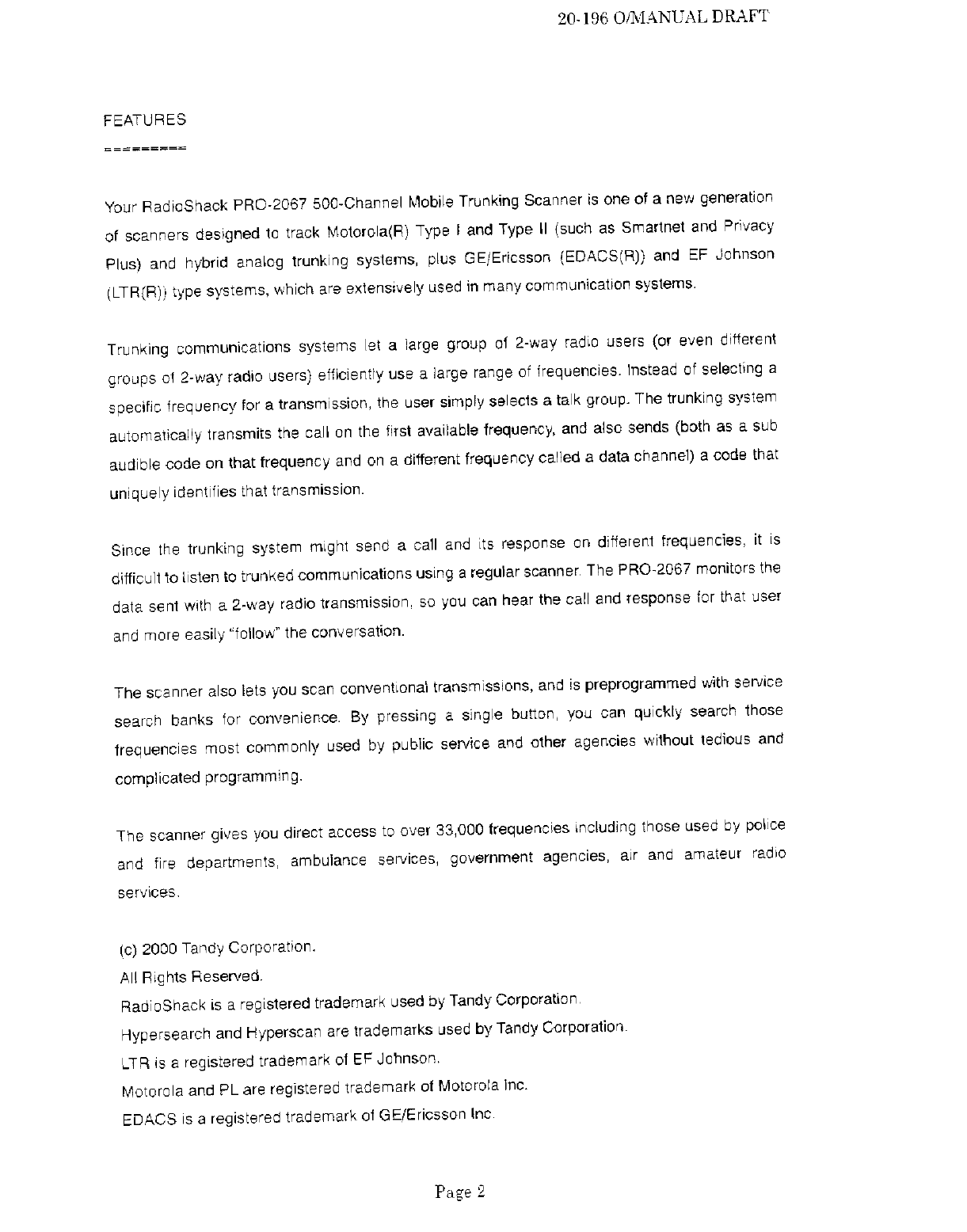 Radio Shack 2000196 500 Channel Mobil Trunking Scanning RX User Manual Users manual