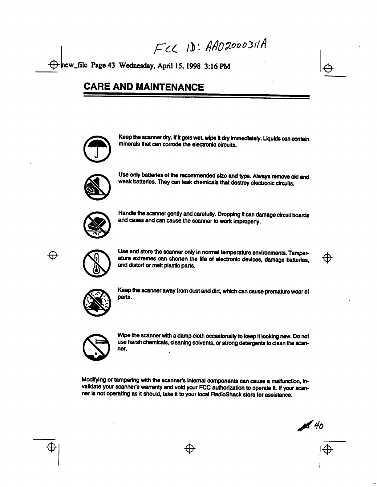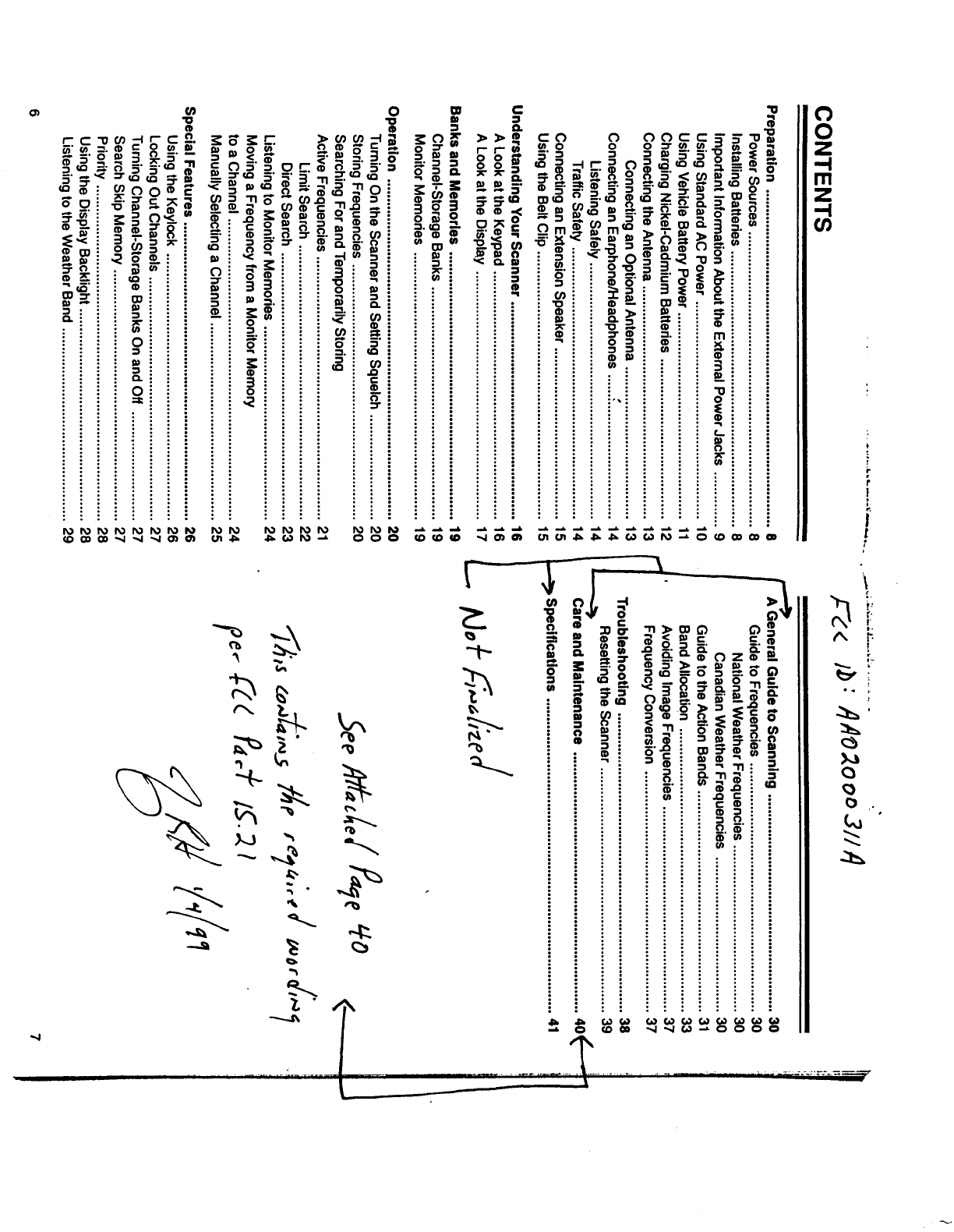 Radio Shack 2000311A Scanner User Manual Supplemental Information