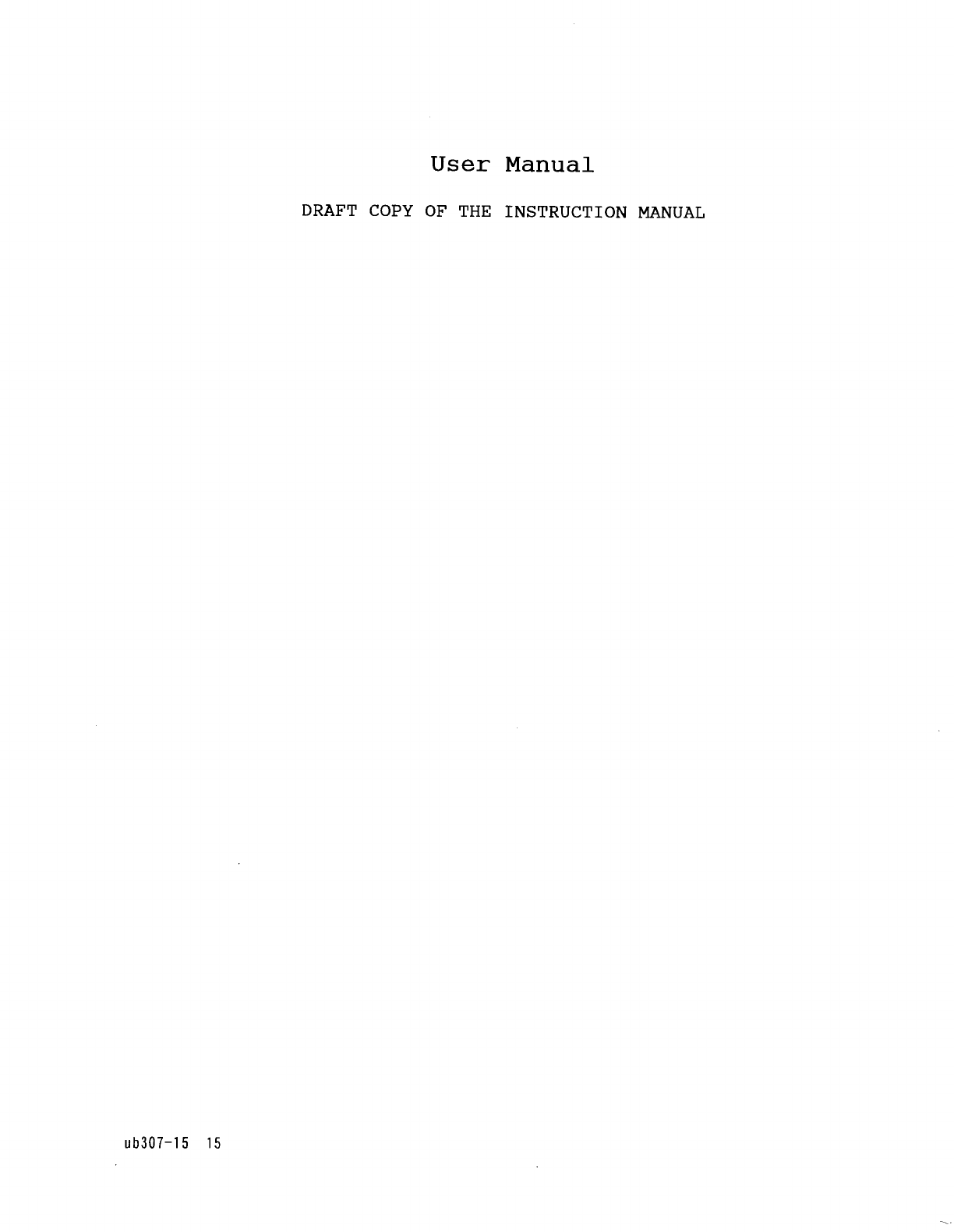Draft Copy of Owners Manual