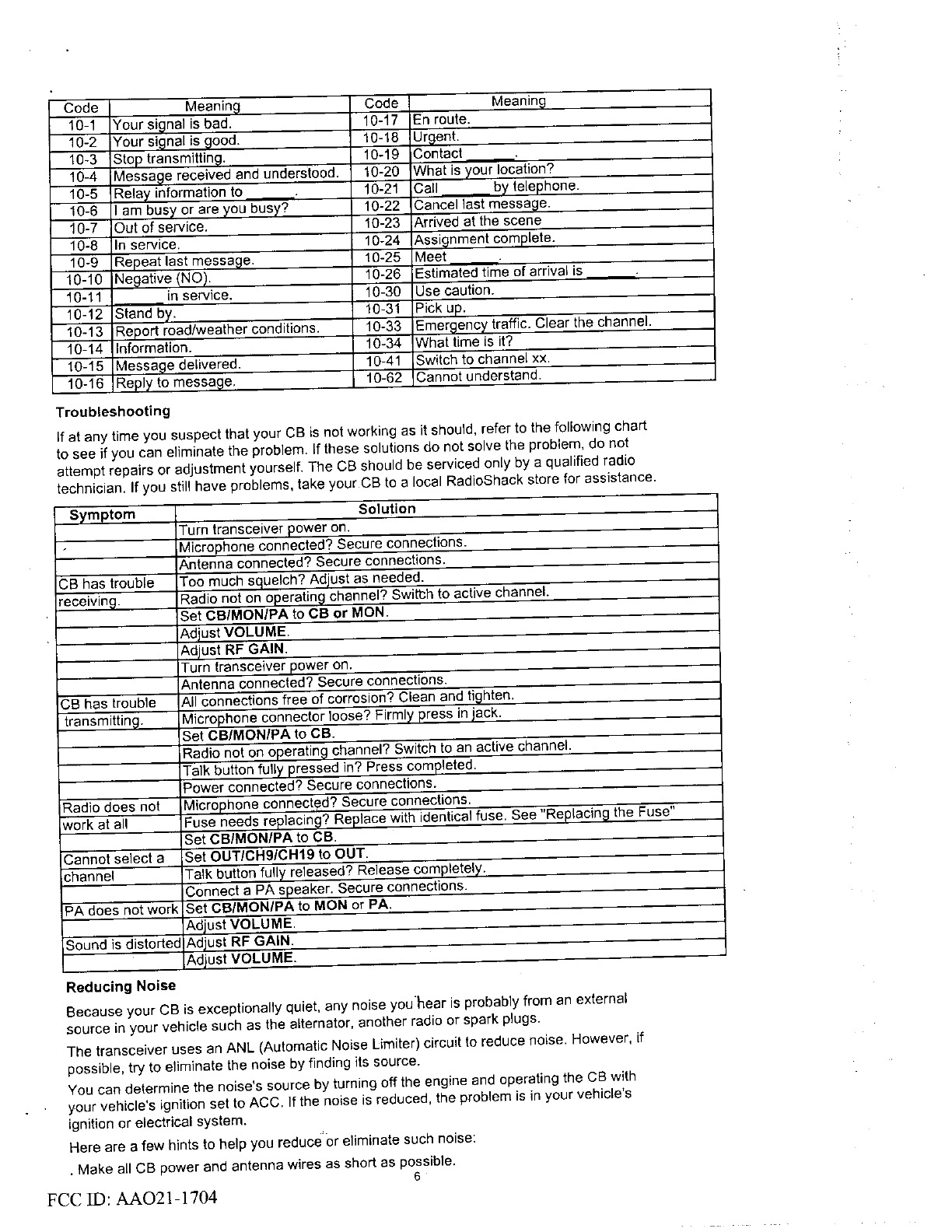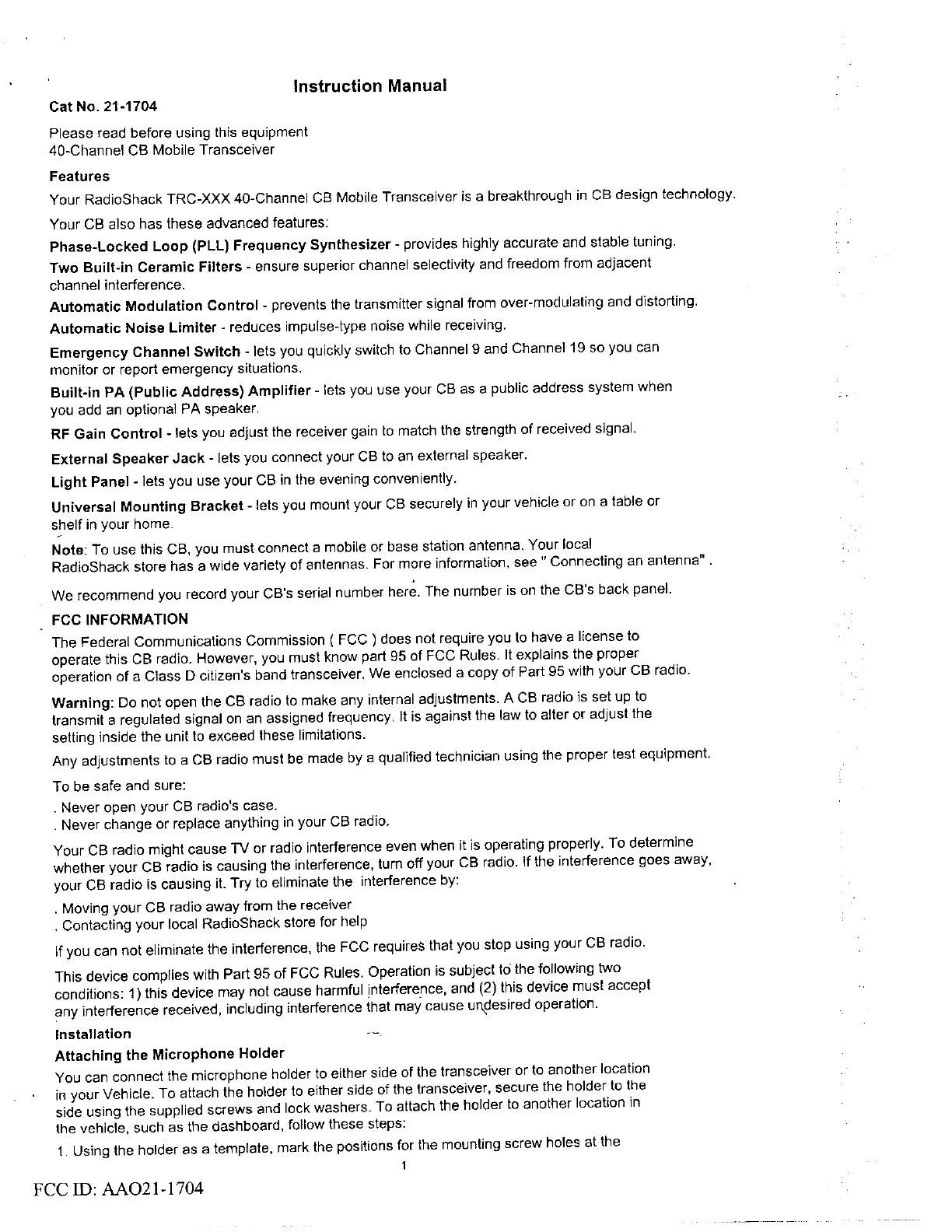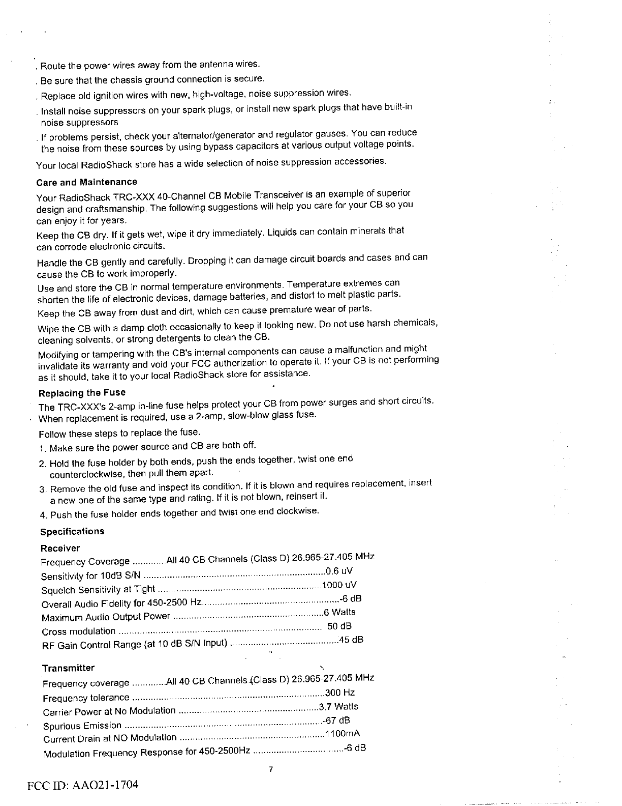 Radio Shack 21-1704 User Manual 8