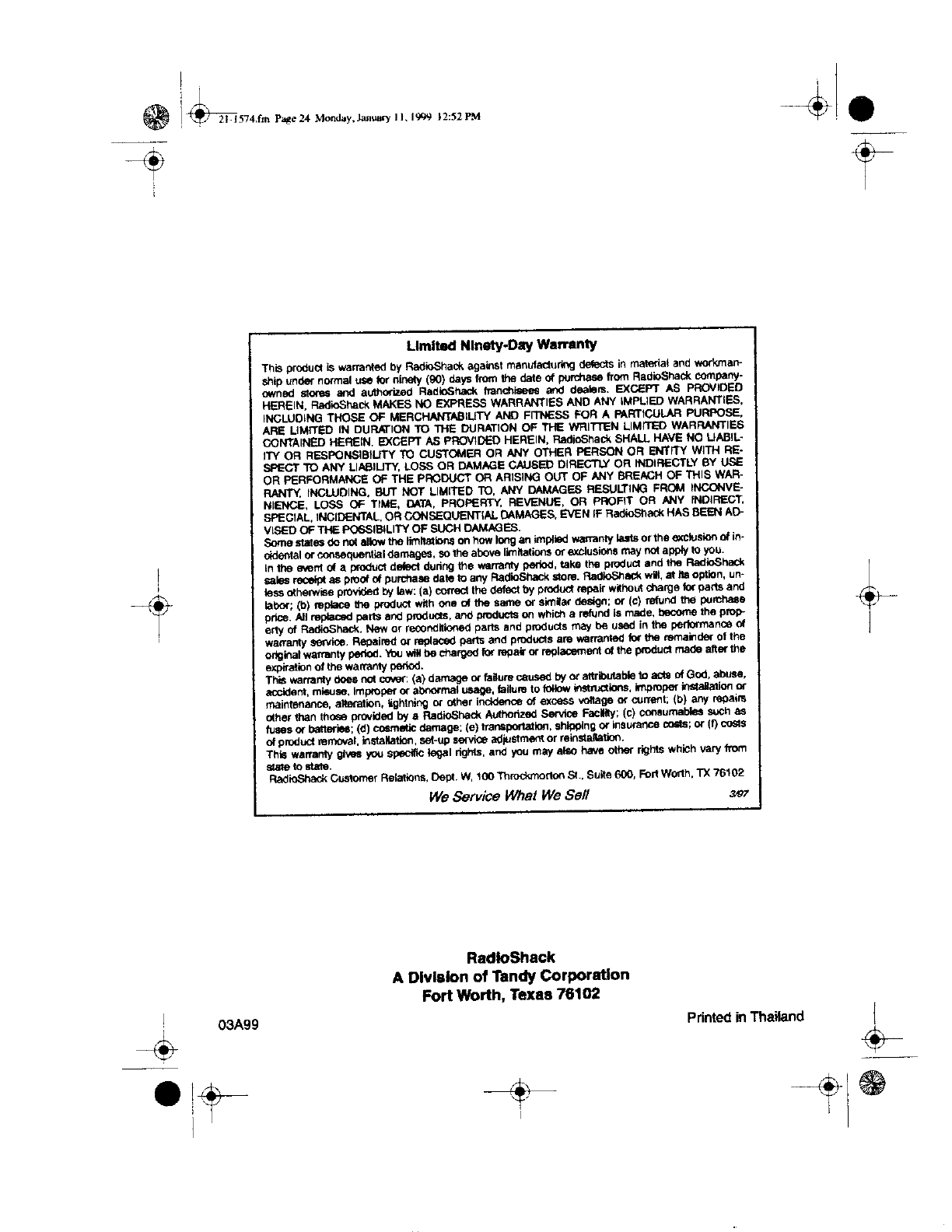 Radio Shack 2101574 User Manual 30720