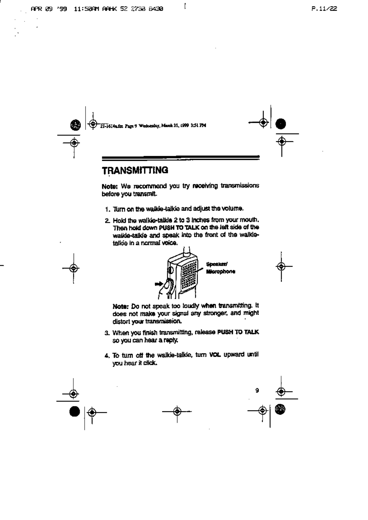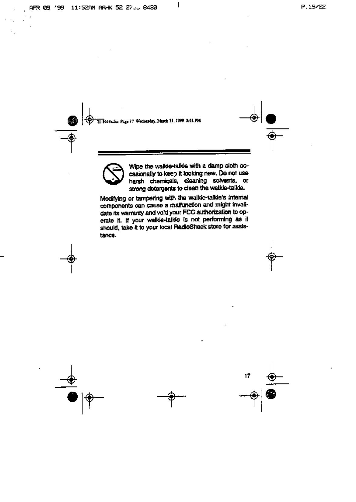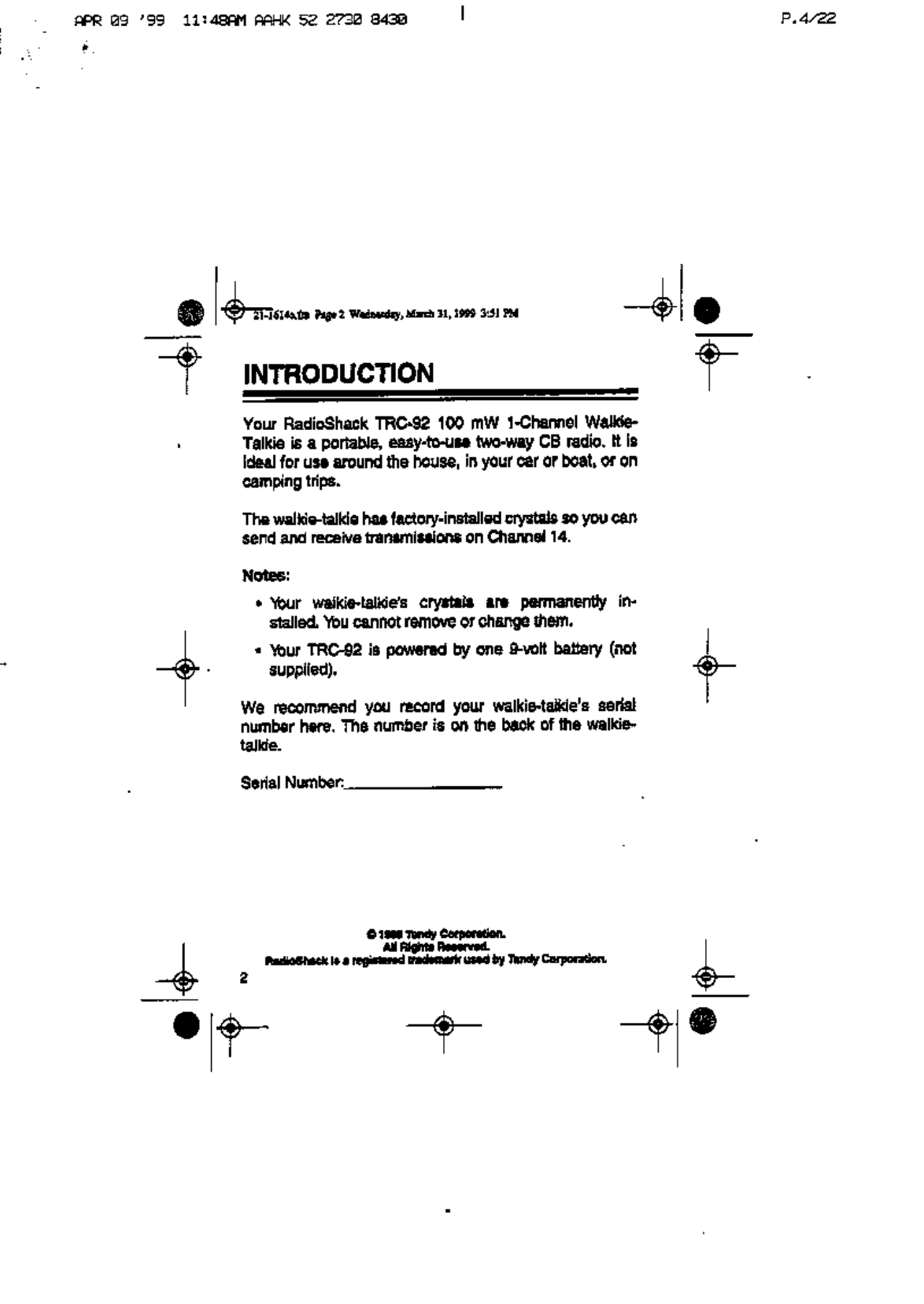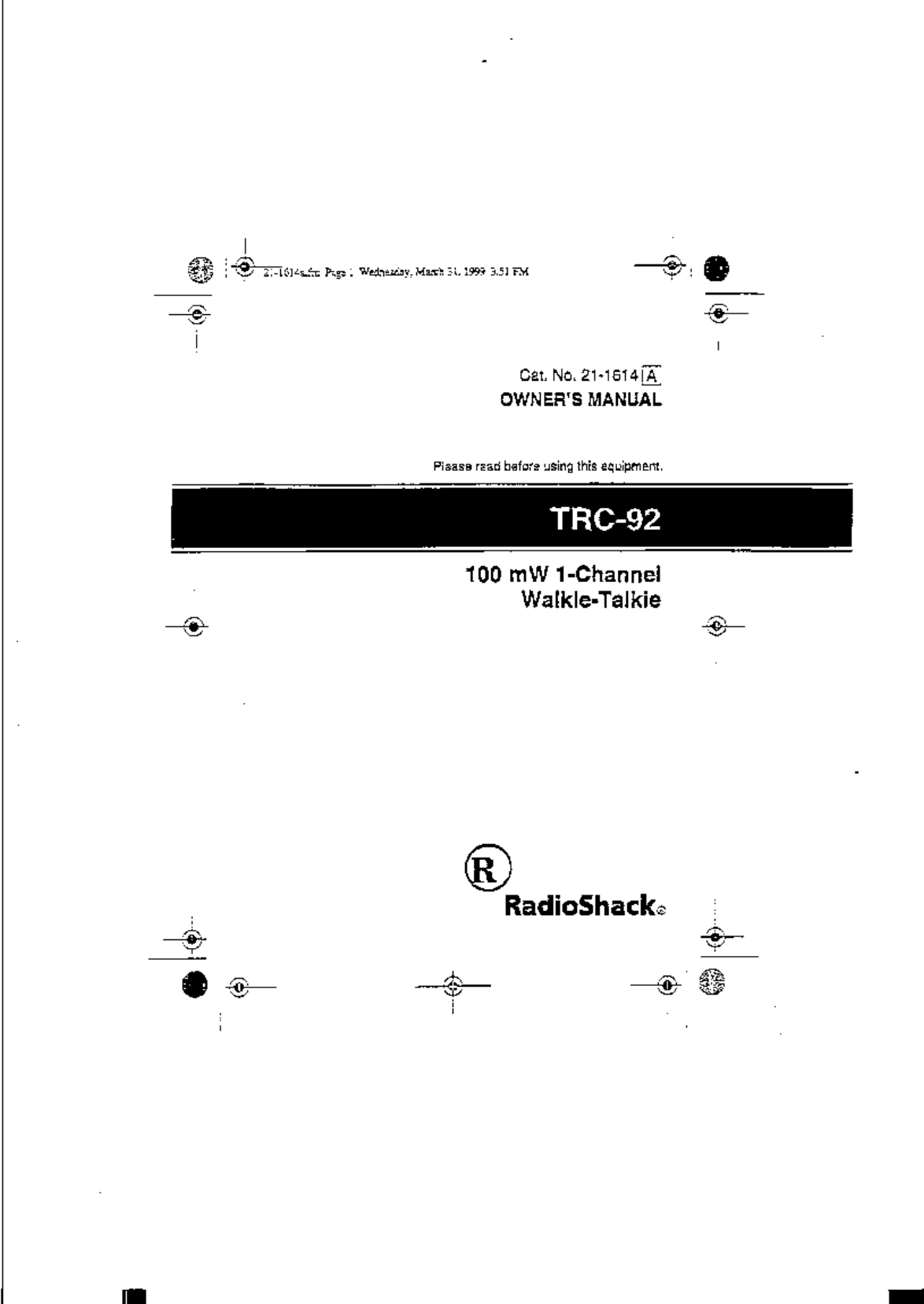 Radio Shack 2101614 27 MHz Walkie Talkie User Manual