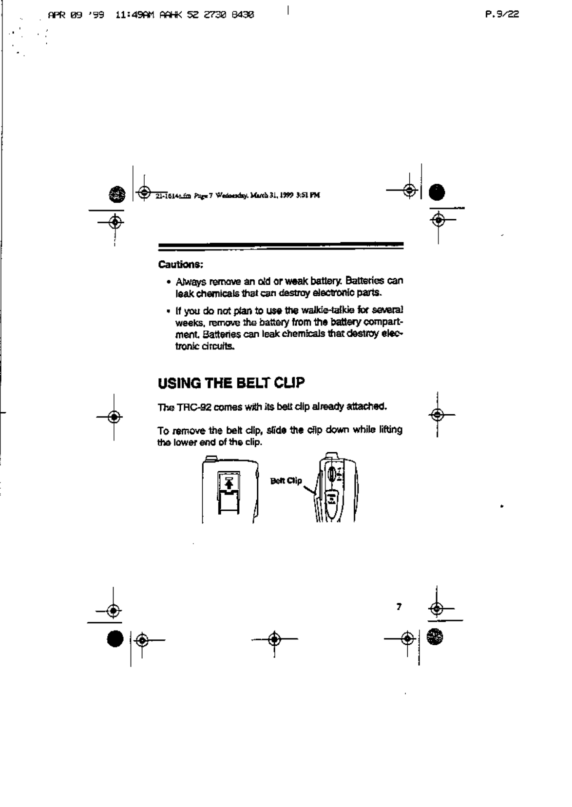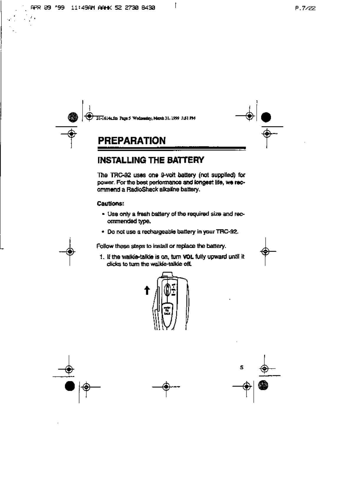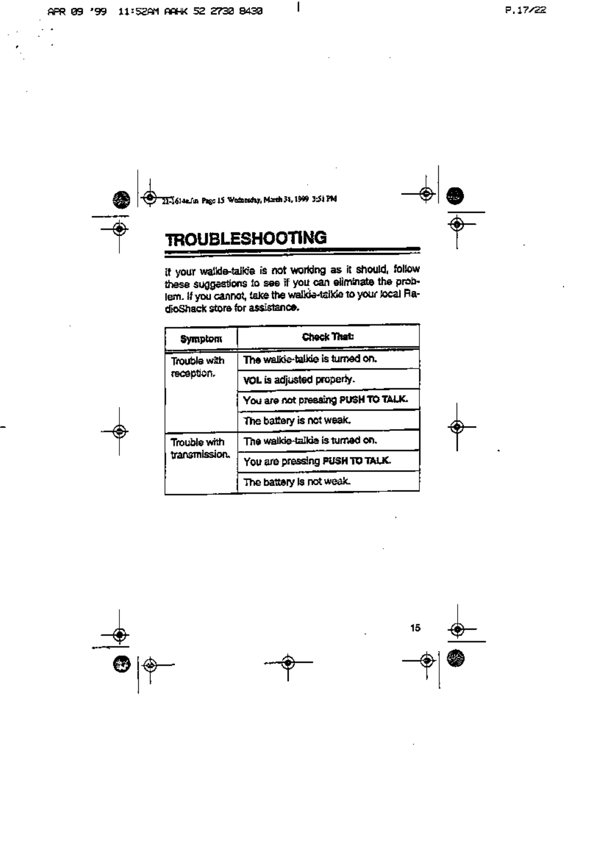 Radio Shack 2101614 27 MHz Walkie Talkie User Manual