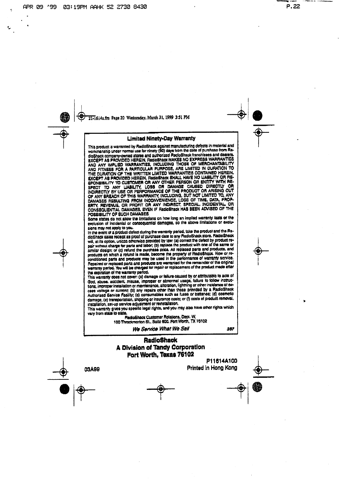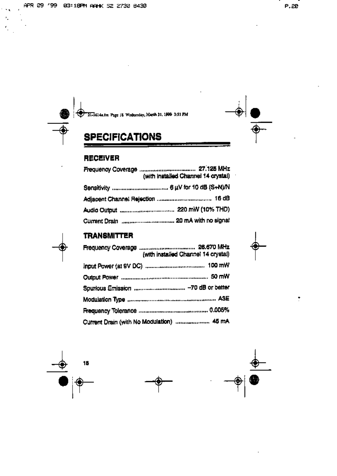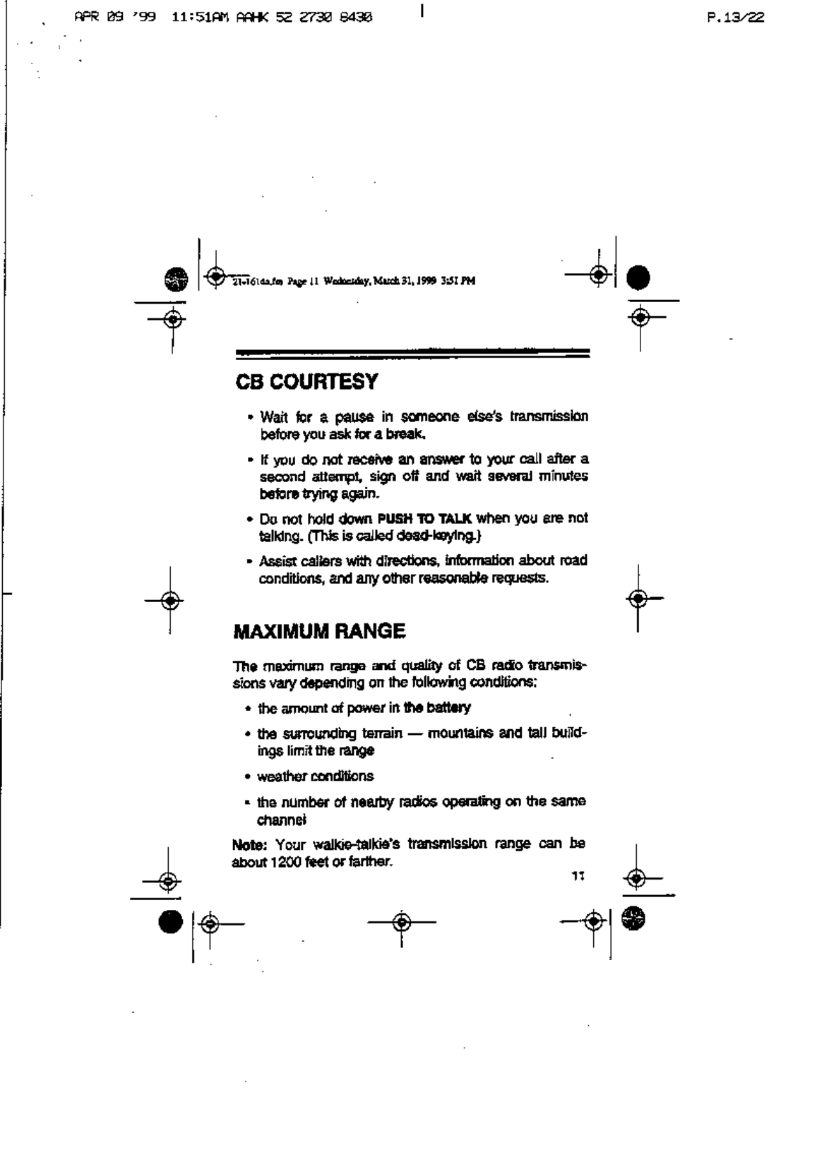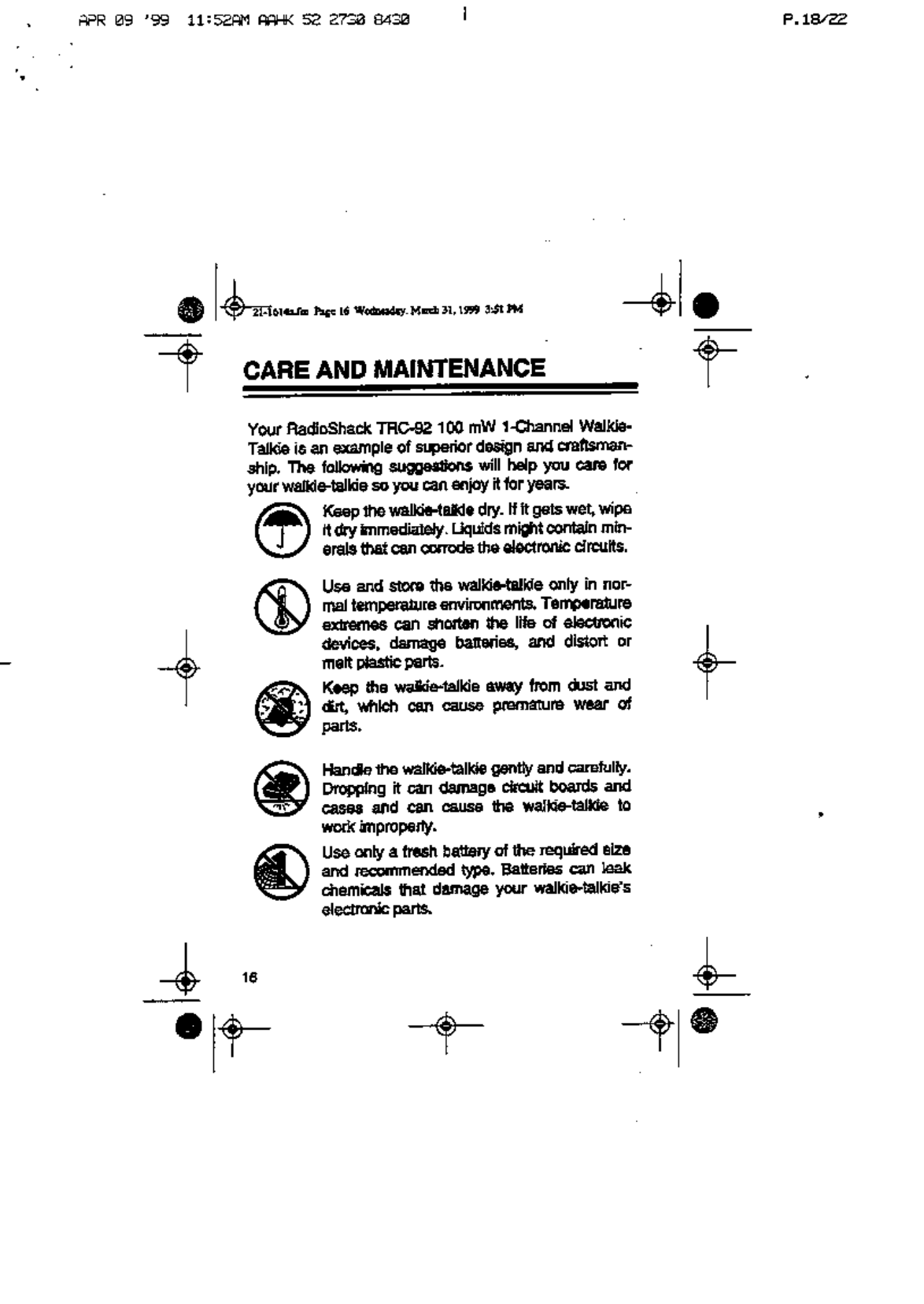Radio Shack 2101614 27 MHz Walkie Talkie User Manual