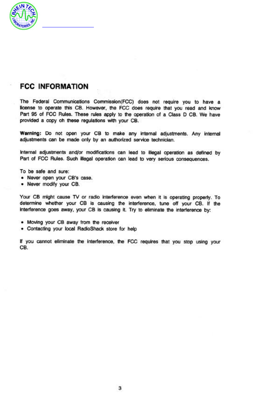 RadioShack Corporation CB Transceiver 2000500 CB REV2