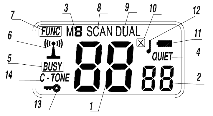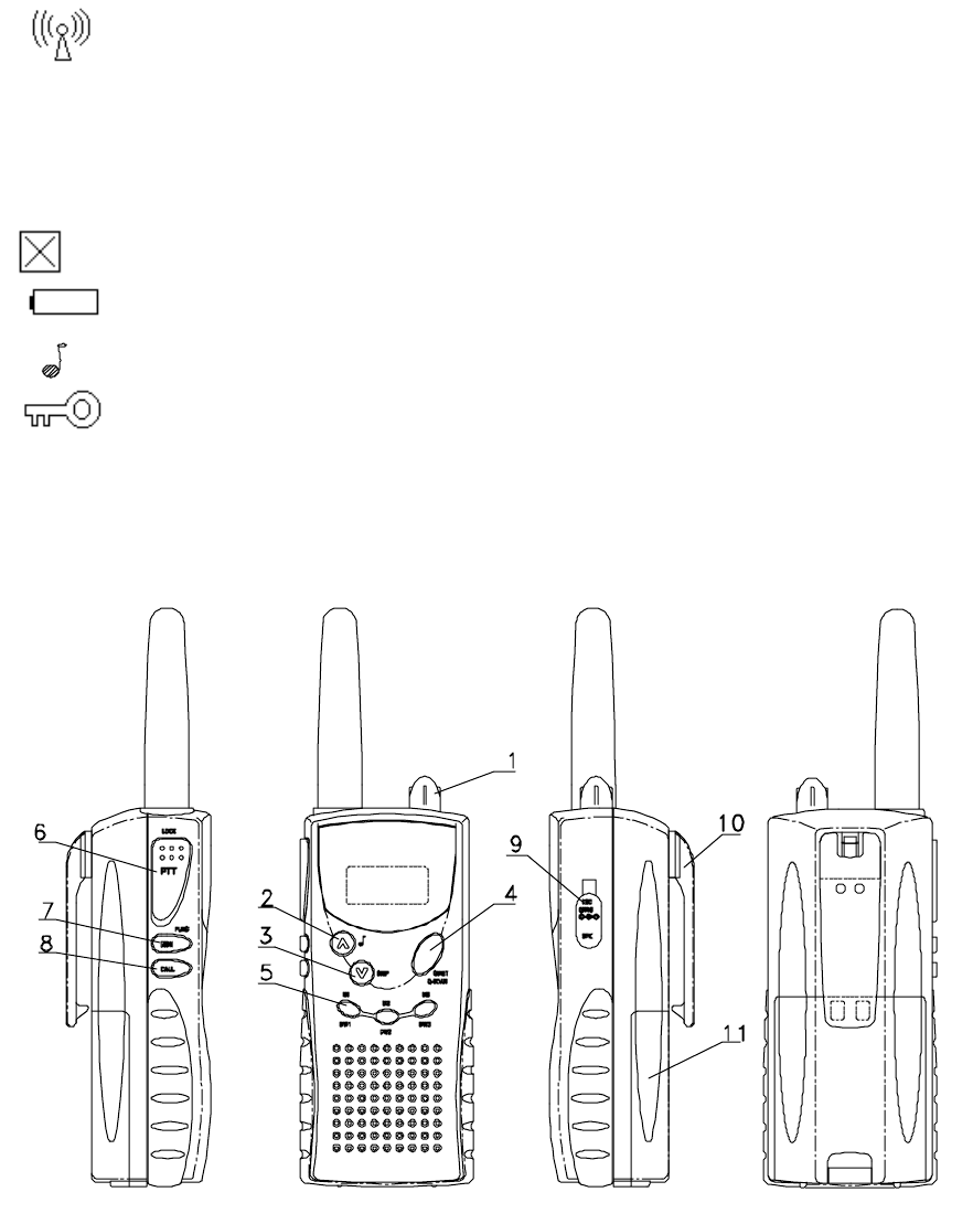 6. “ ” : Displays when your radio is transmitting or the CALL button is pressed.