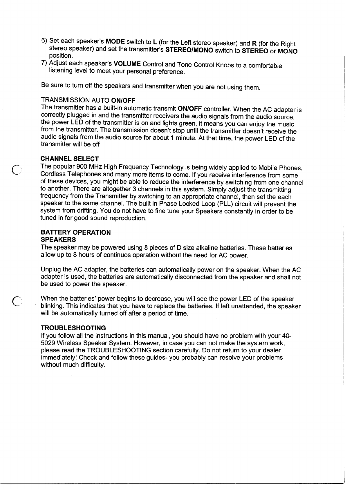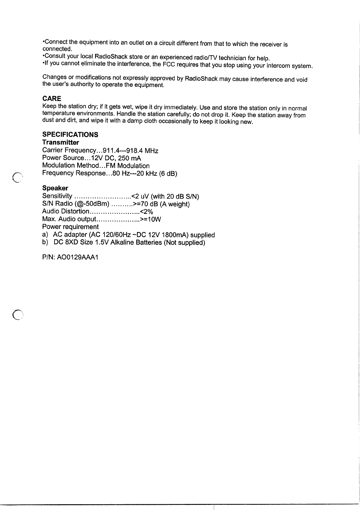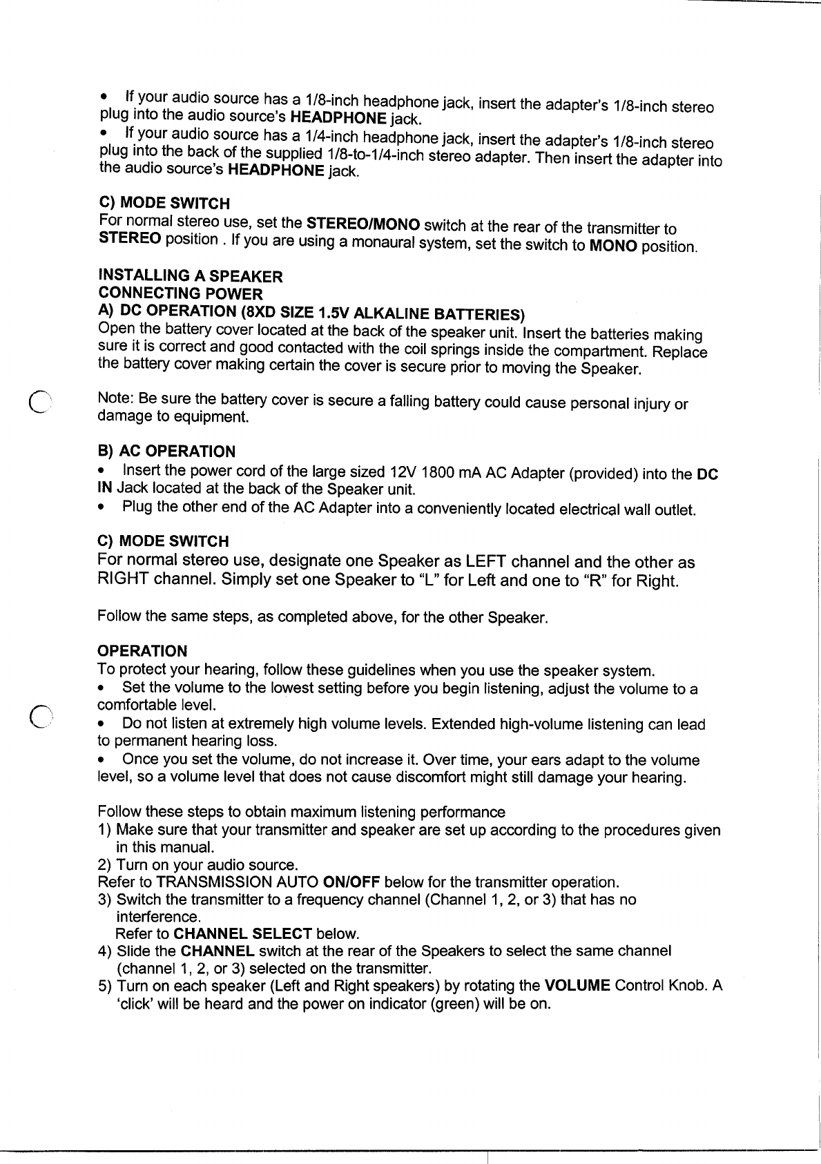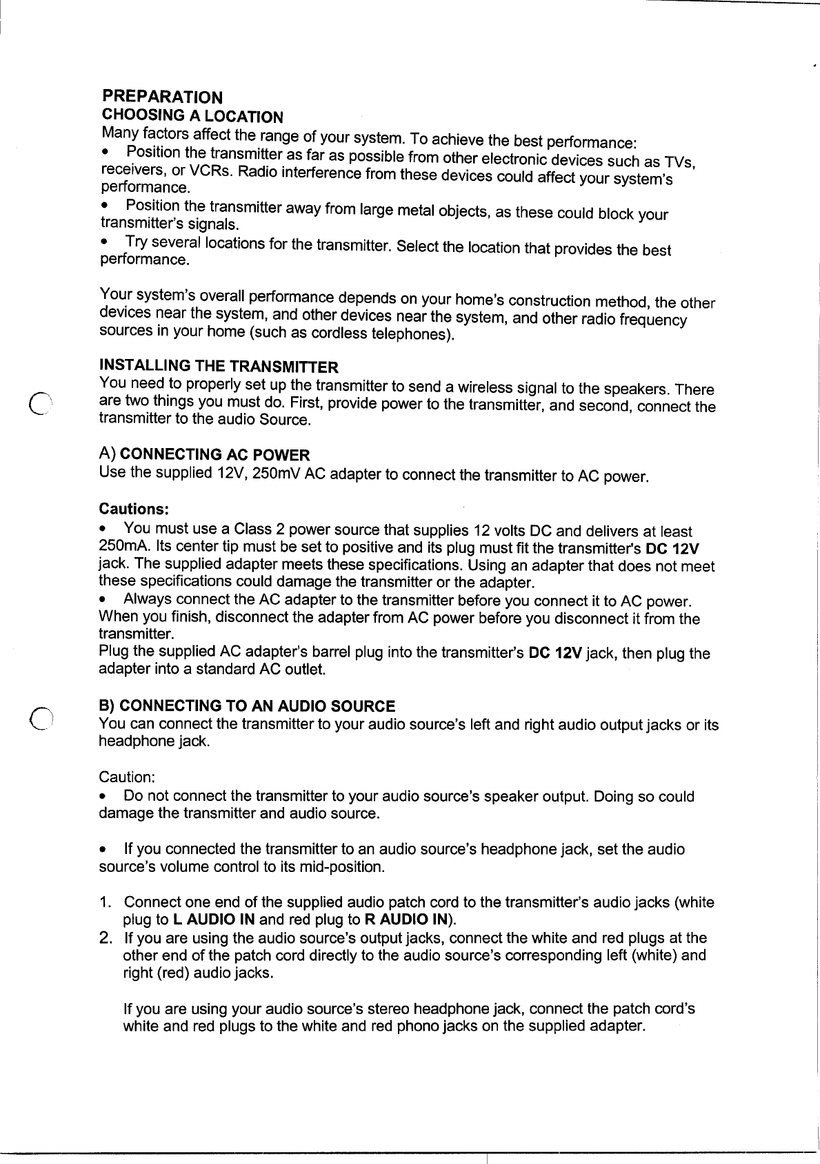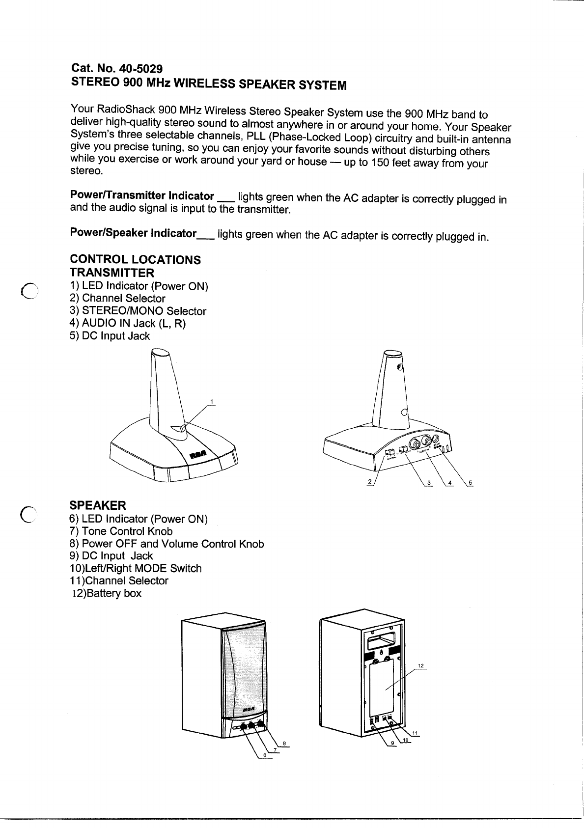 Radio Shack 4005029T 900MHz Transmitter for Wireless Headphone User Manual