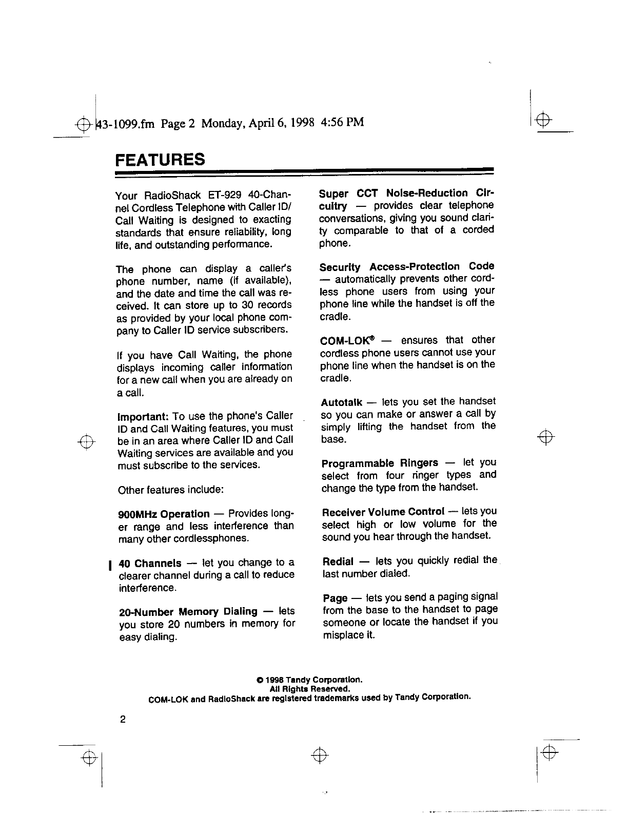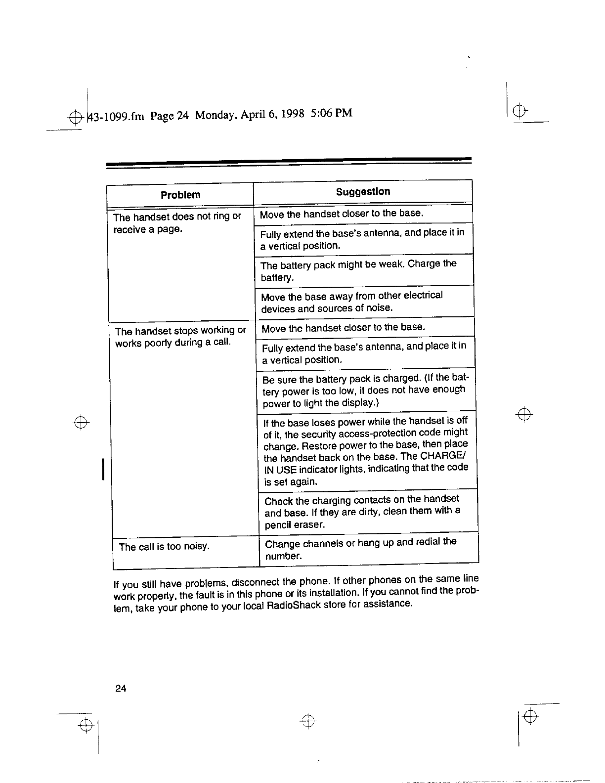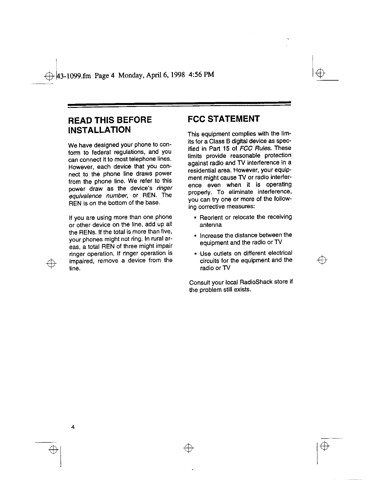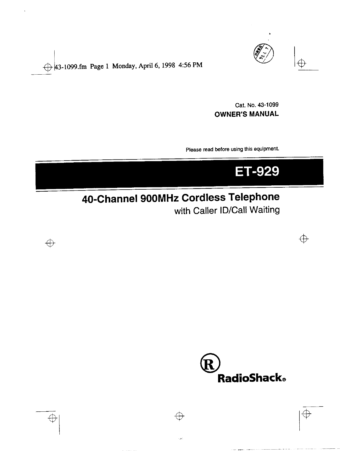 Radio Shack 4300794 Cordless Telephone User Manual 50941