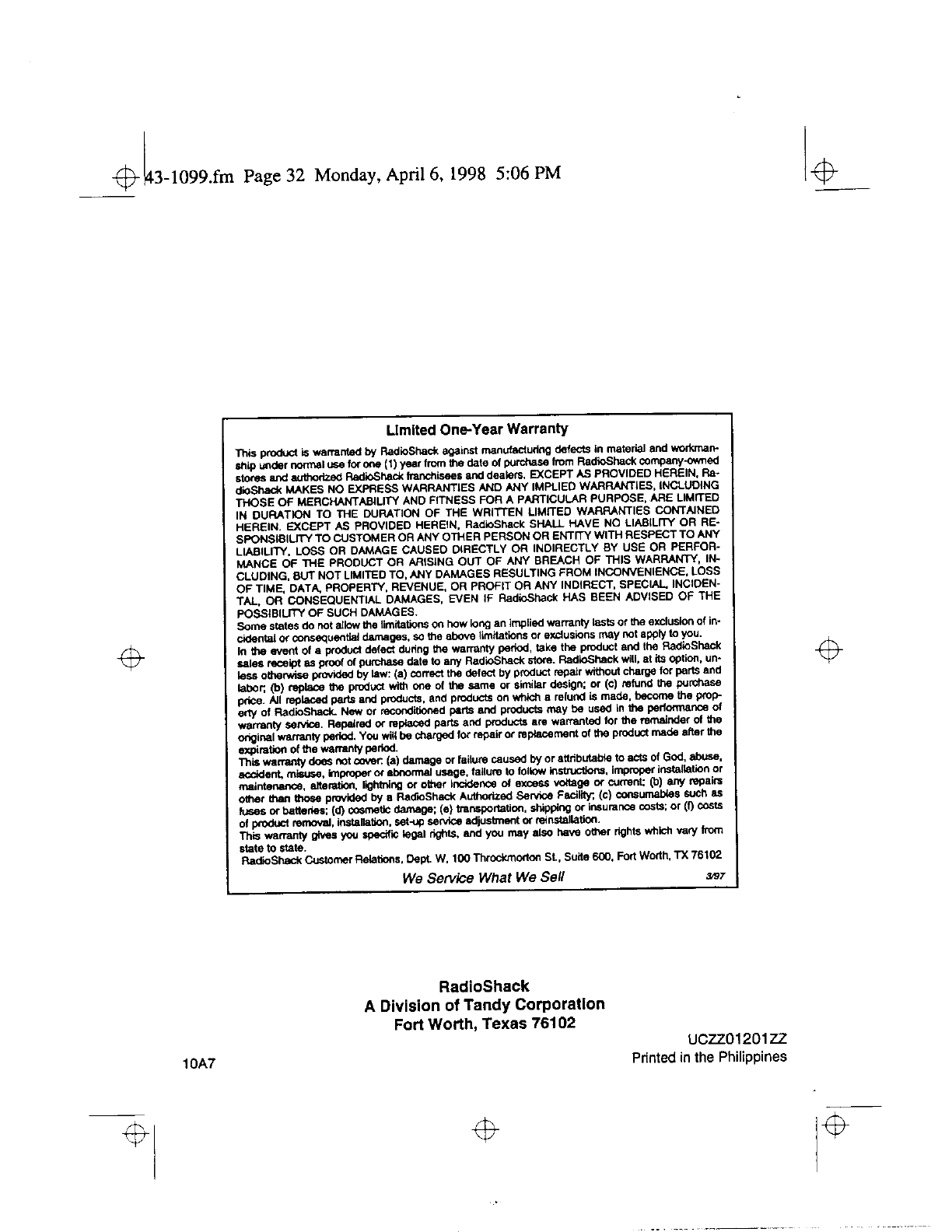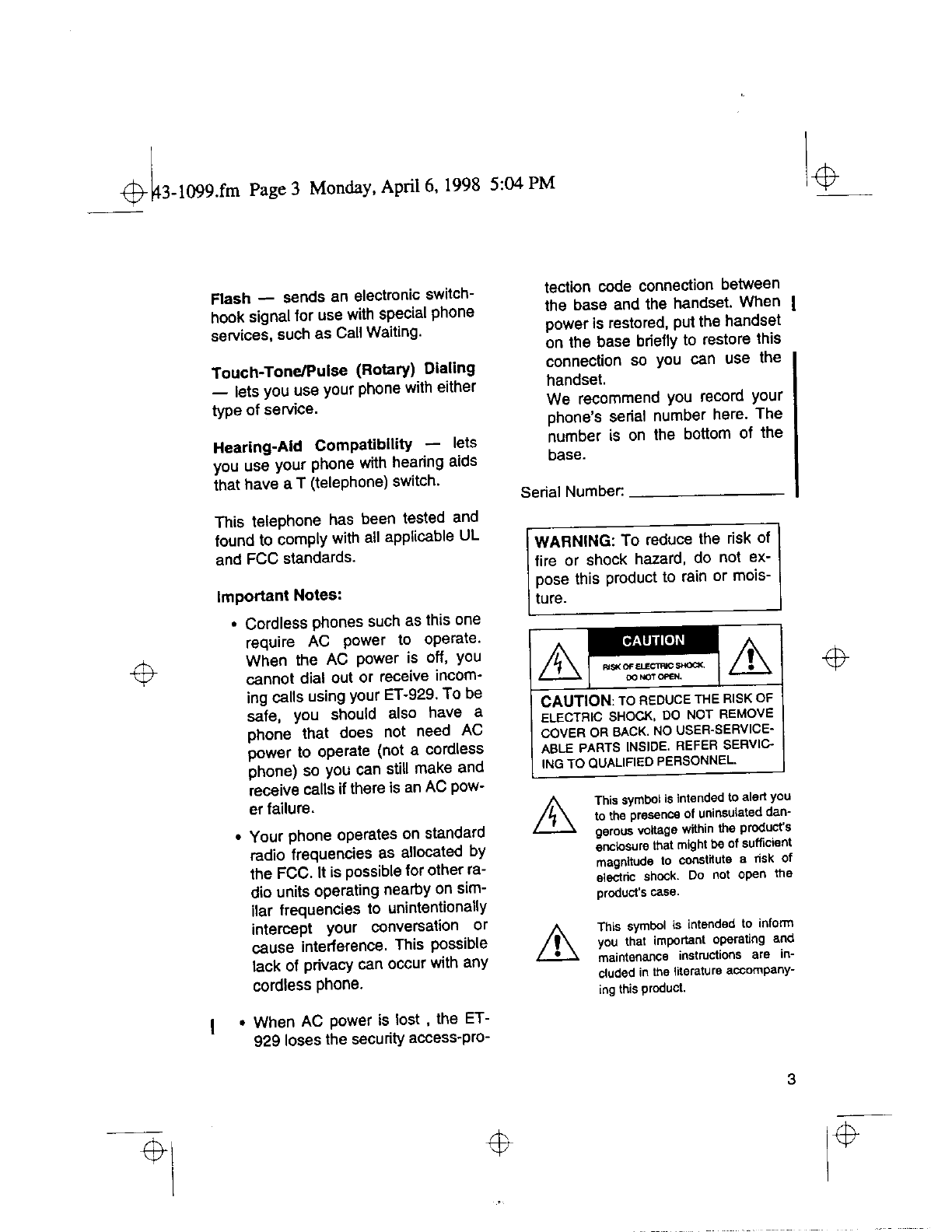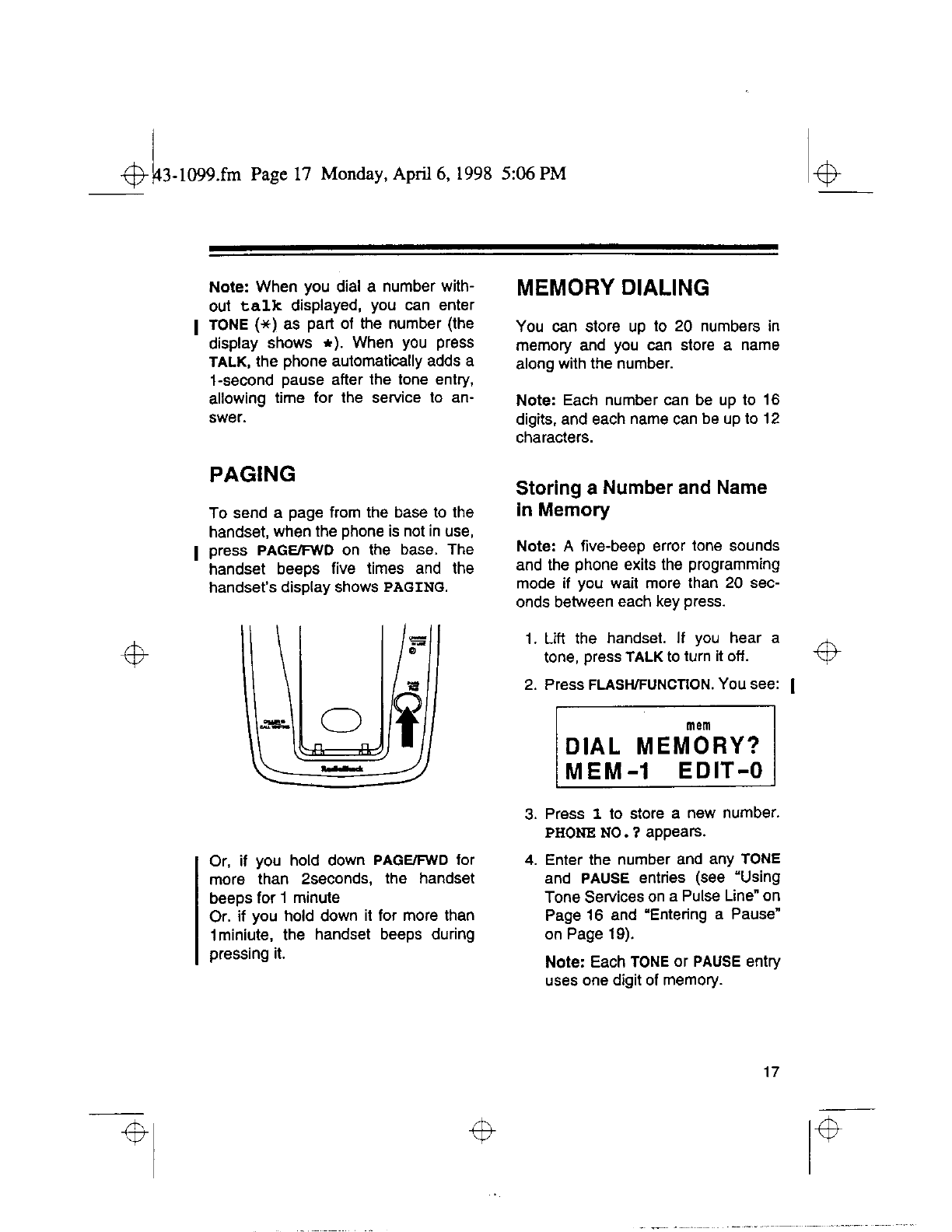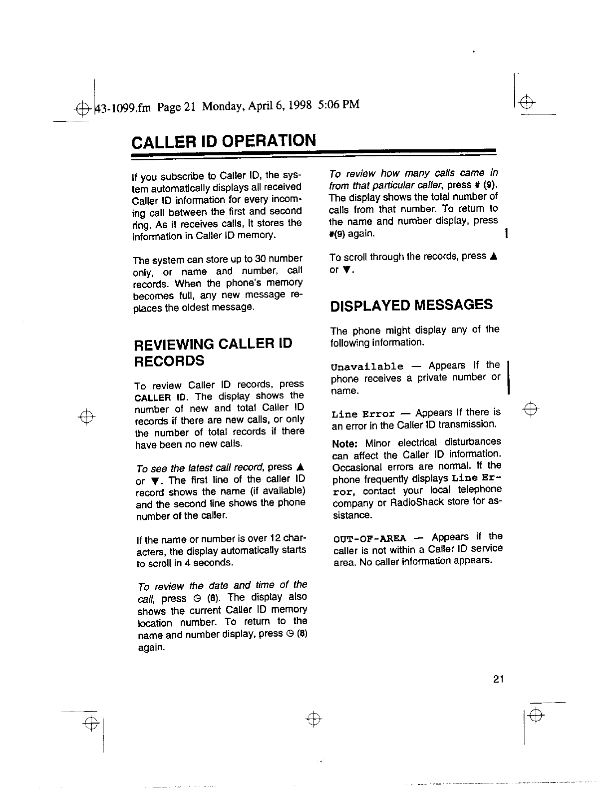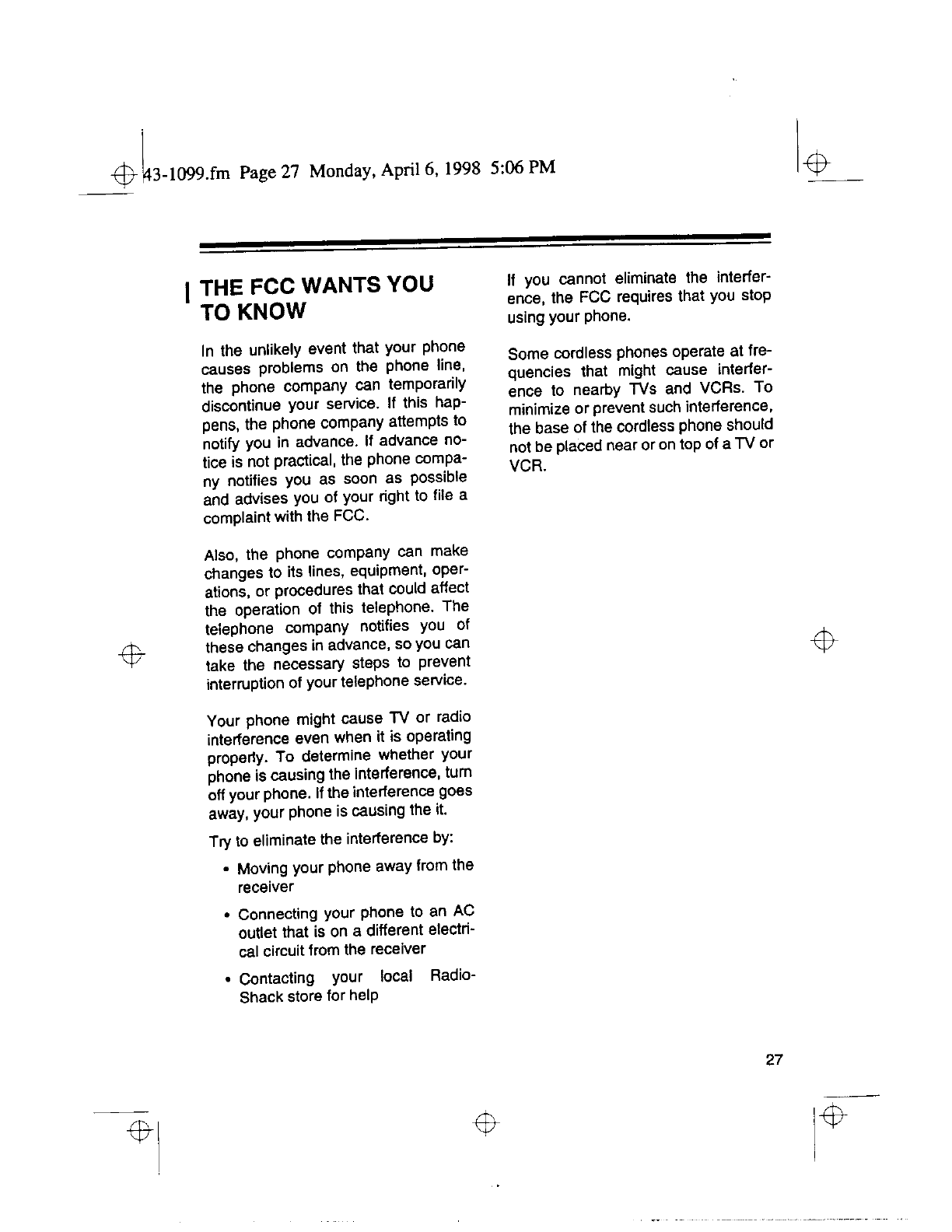 Radio Shack 4300794 Cordless Telephone User Manual 50941