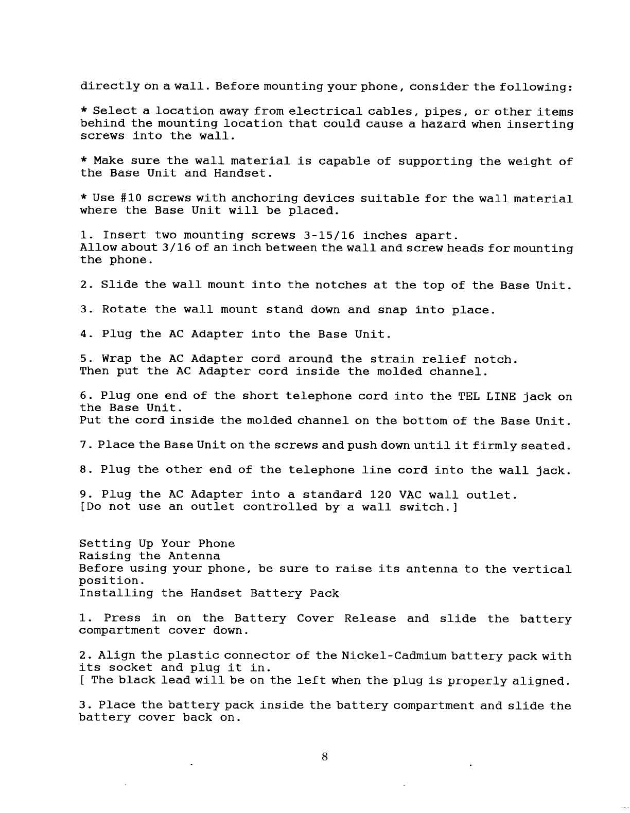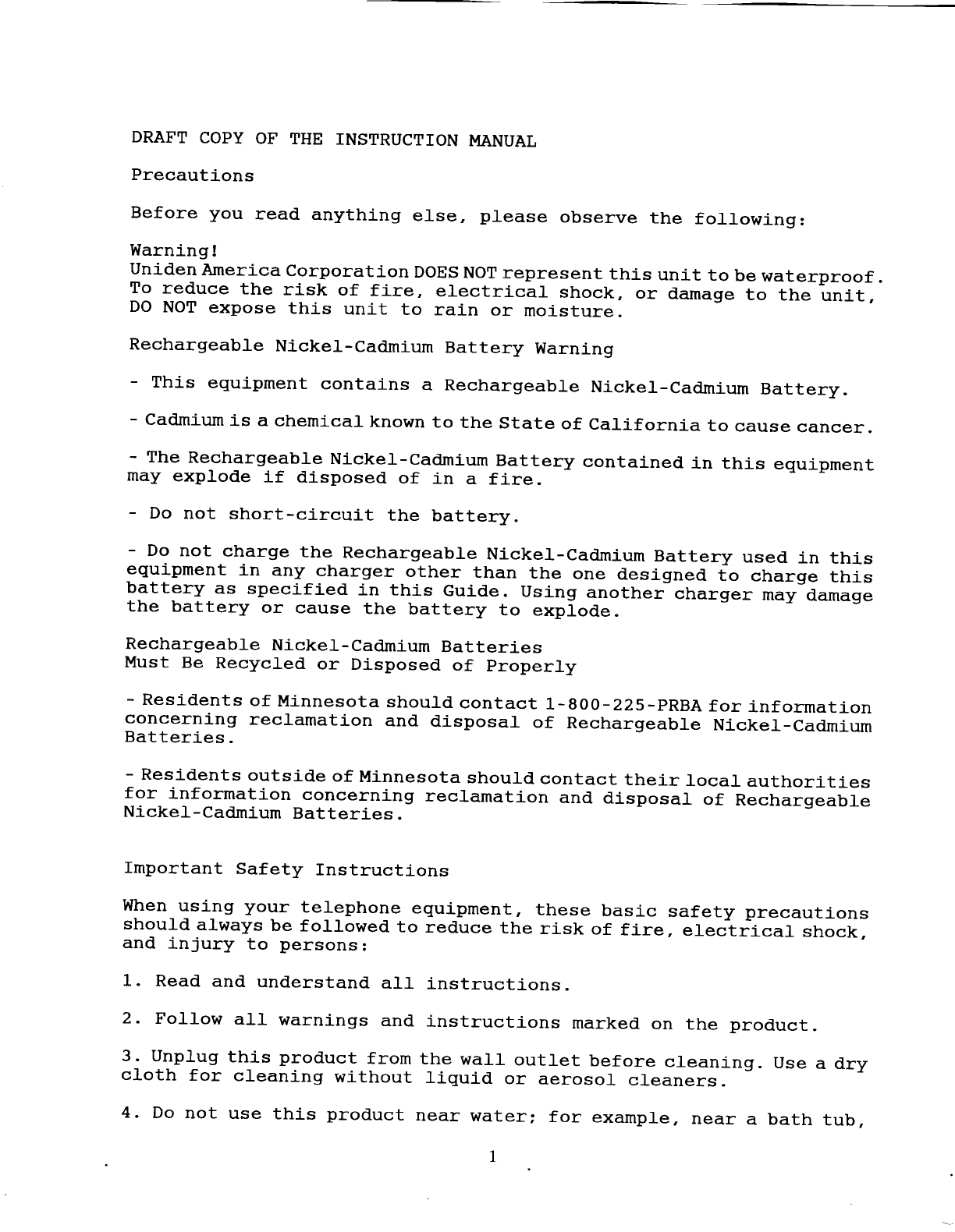 Radio Shack 4301124 900 MHz Spread Spectrum Cordless Telephone User Manual Draft Owners Manual